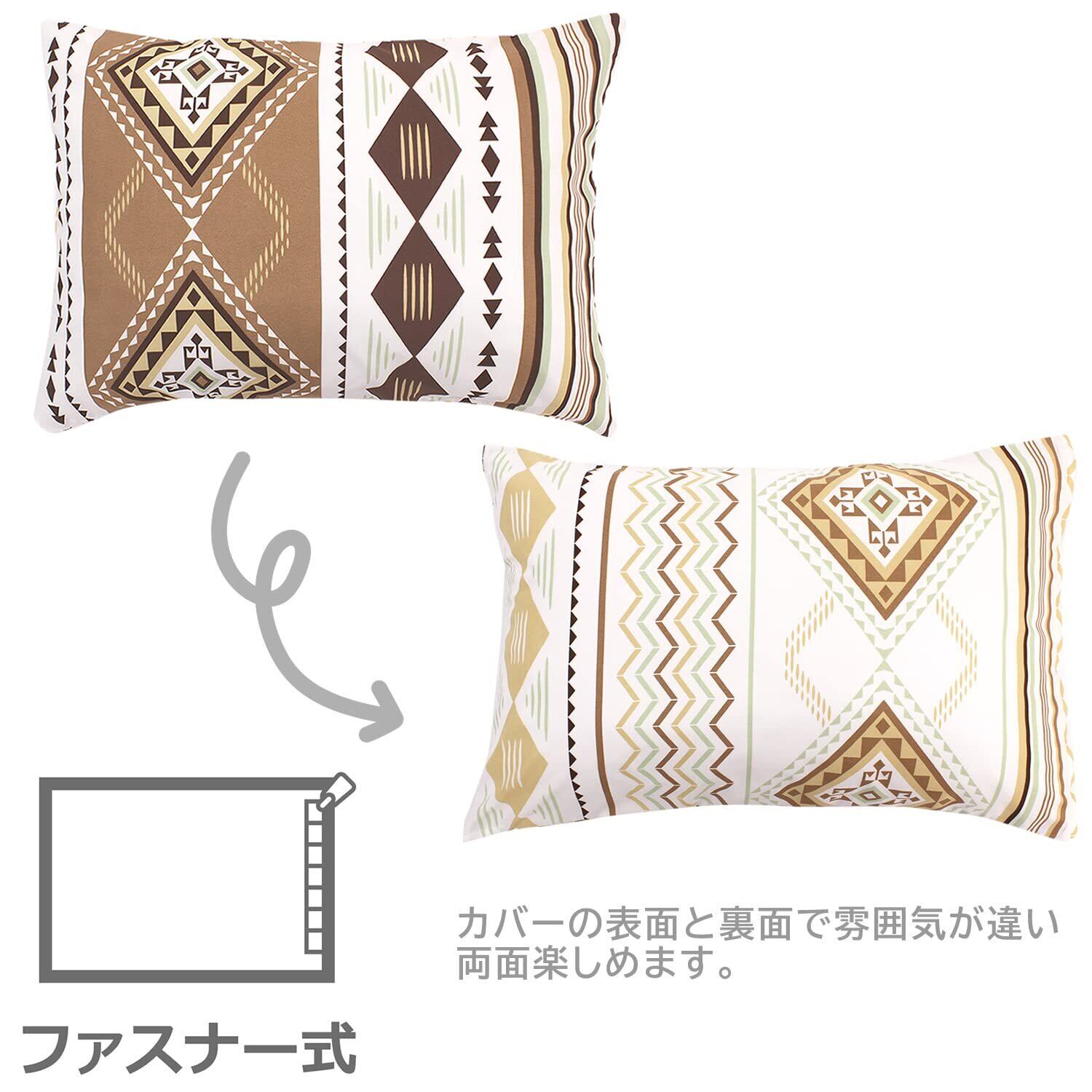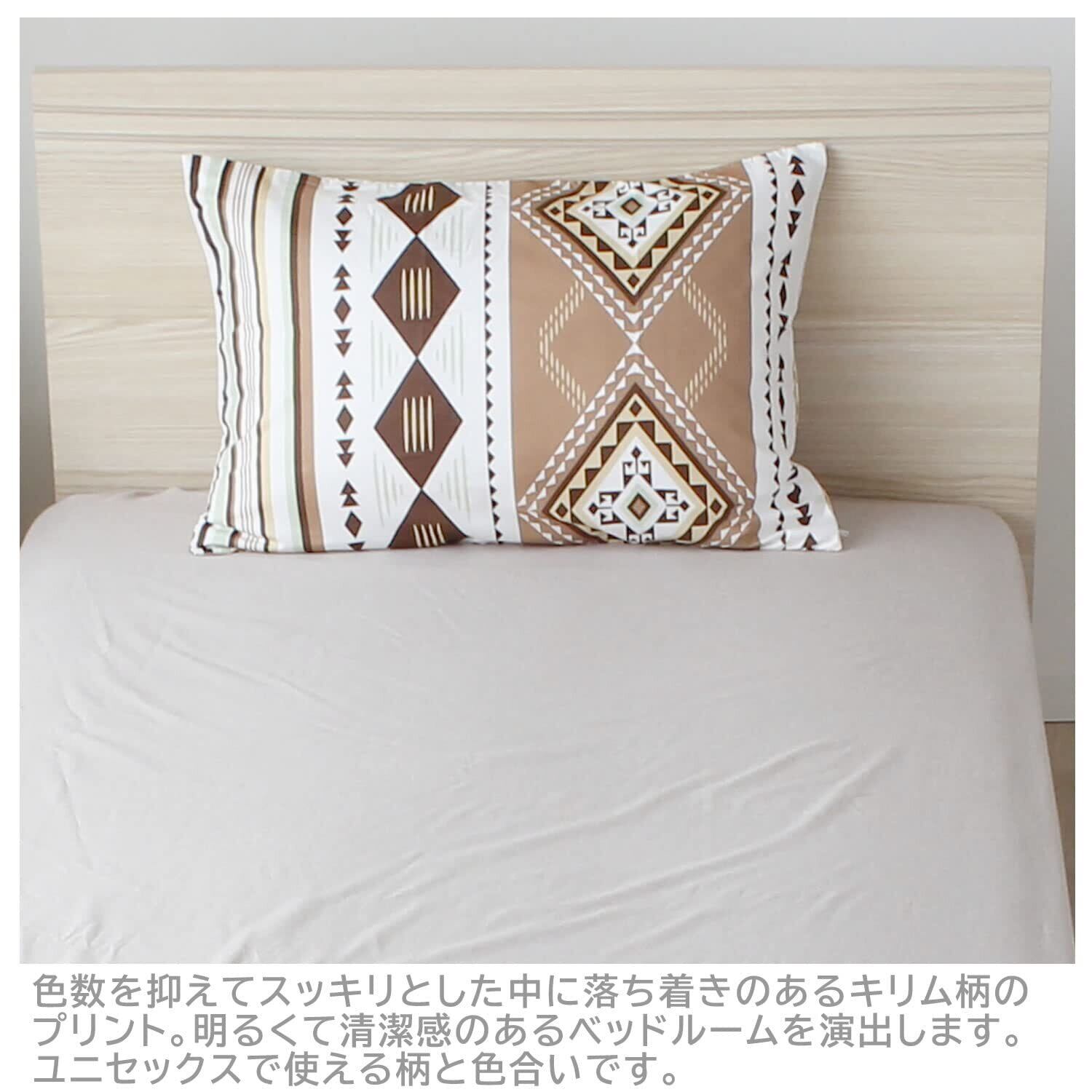 メリーナイト(Merry Night) 枕カバー 「キリム」 ベージュ 約43×63cm ファスナー式 まくらが入れやすい 洗える 速乾 シワになりにくい FF16116-96