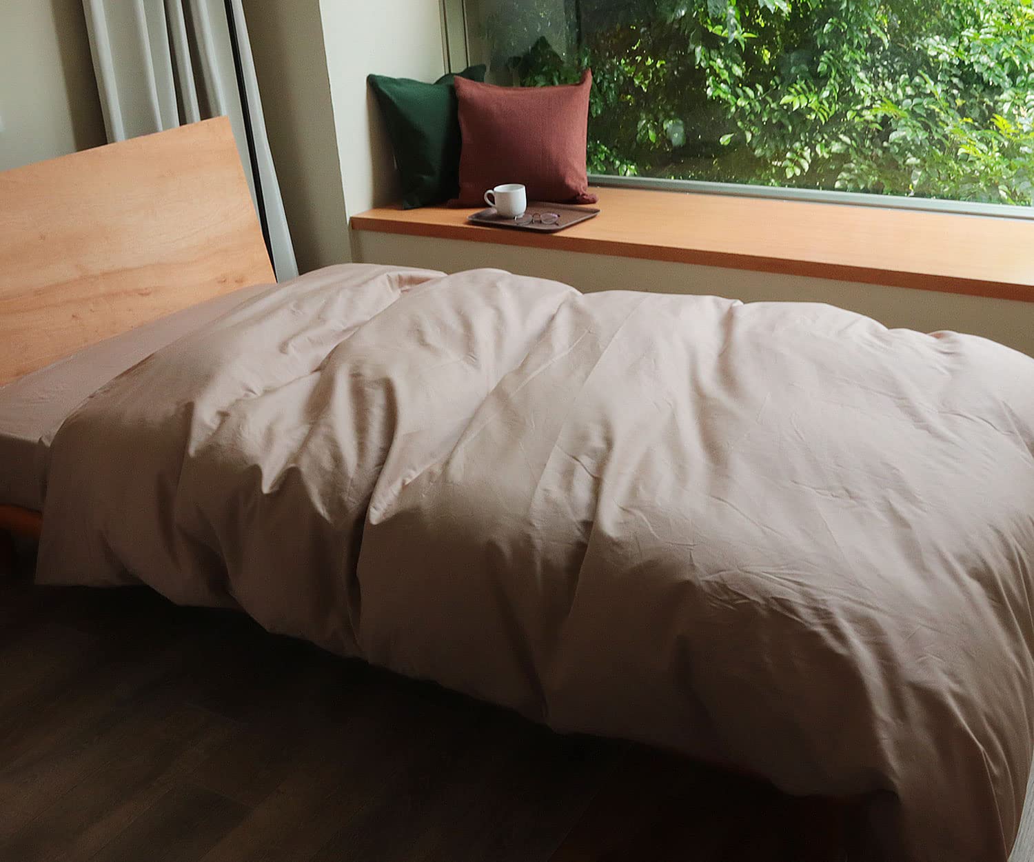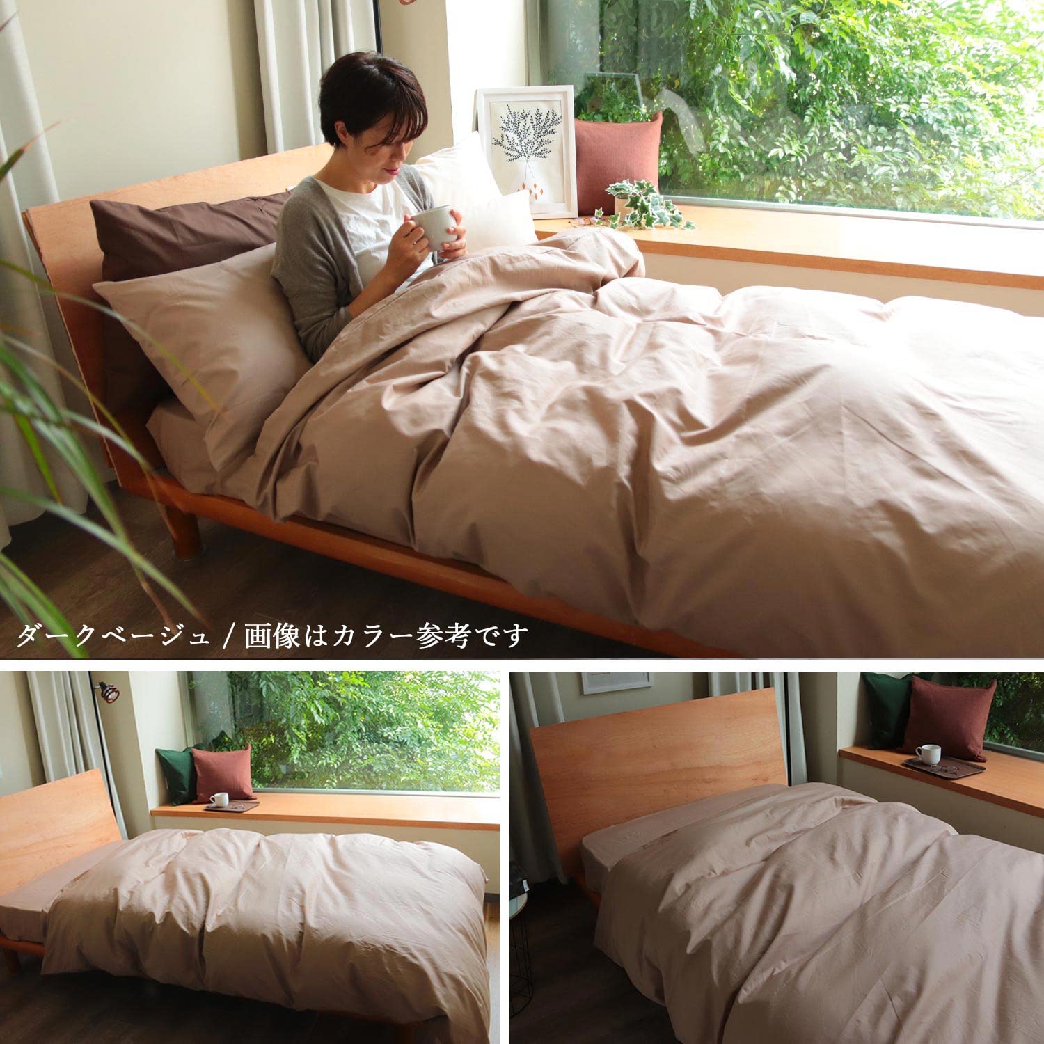 MORE 掛け布団カバー シングル 150x210cm 日本製 綿100% 無地 高密度200本 抗菌防臭加工 8ヶ所紐付き ホテル仕様 (シングル ダークベージュ)