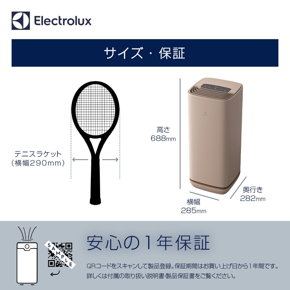 【花粉モード】 エレクトロラックス UltimateHome 500 加湿空気清浄機 ピュアゼンシステム (常時モニター) 静音 スリム 北欧デザイン 脱臭 24畳 静音 ウォルナットベージュ EP52-35WBA