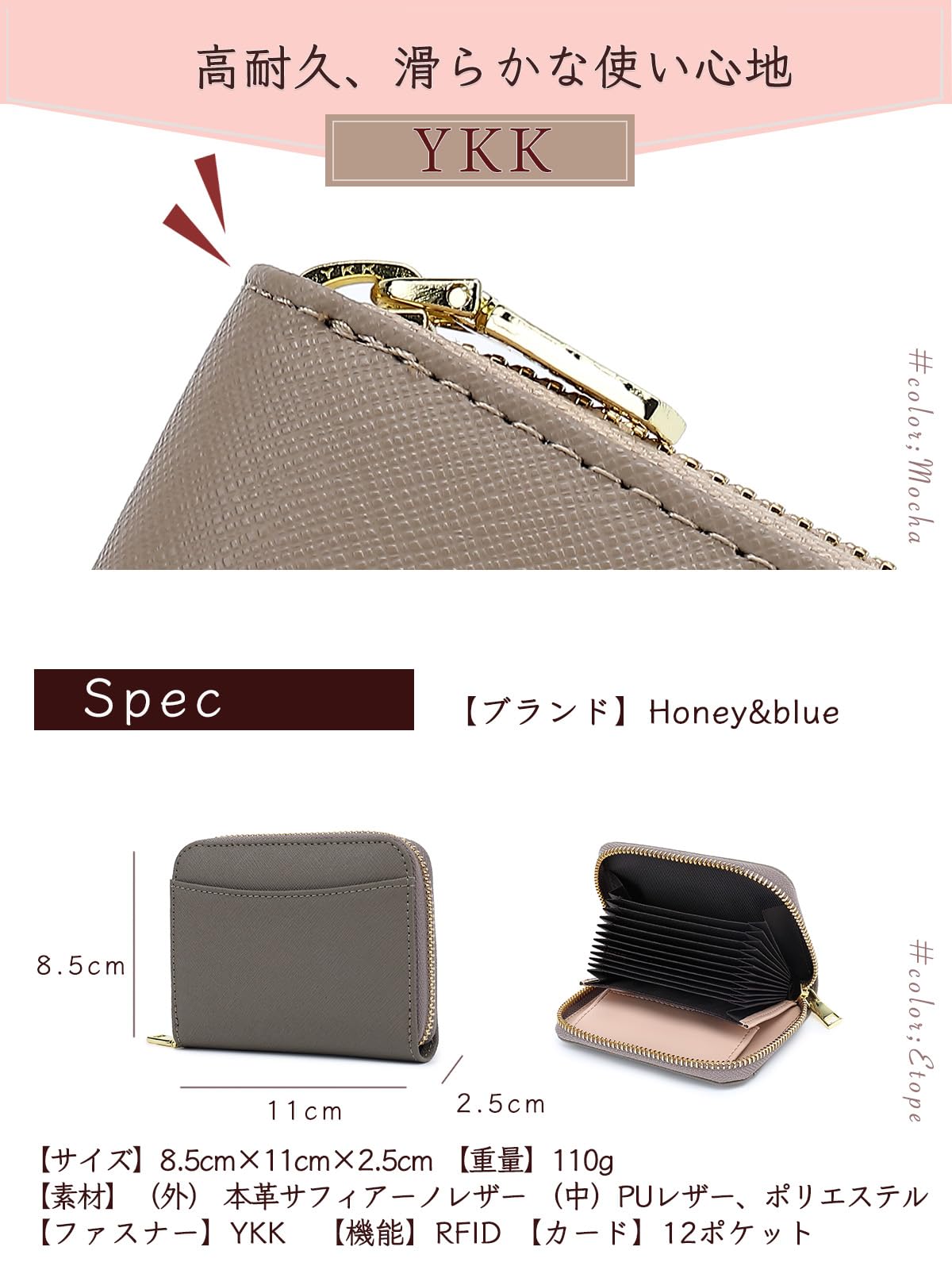 [honey&blue] ミニ財布 カードケース レディース お札が折れない 二つ折り財布 本革 YKKファスナー スキミング防止 (アイボリー×キャメル)