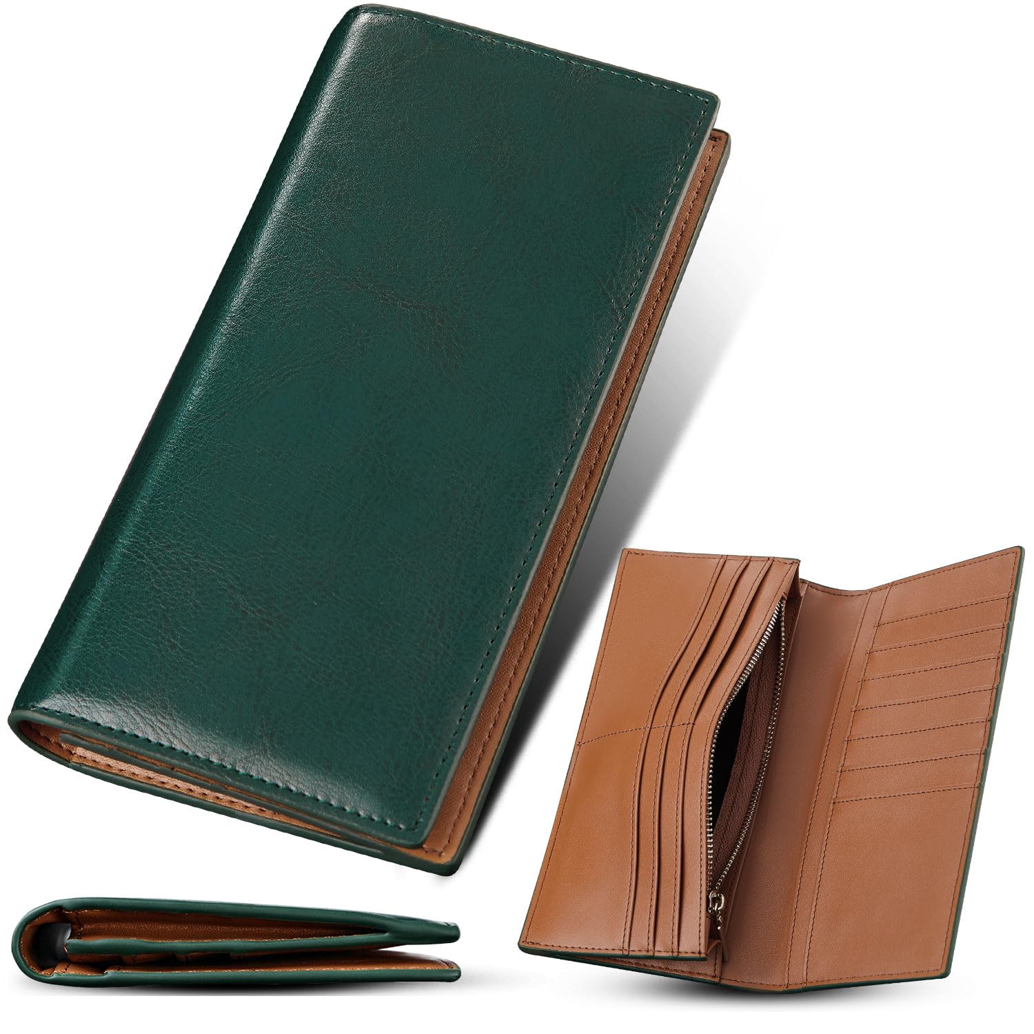 【長財布 薄い 2つ折り】厚み1.5cmの超薄型設計ながら、19枚のカードスロット+ファスナー付小銭入れ+2つフリーポケット+2段札入れを完備。薄型ながら十分にカードの収納は可能、お出かけの際の荷物に余裕がもてます。
