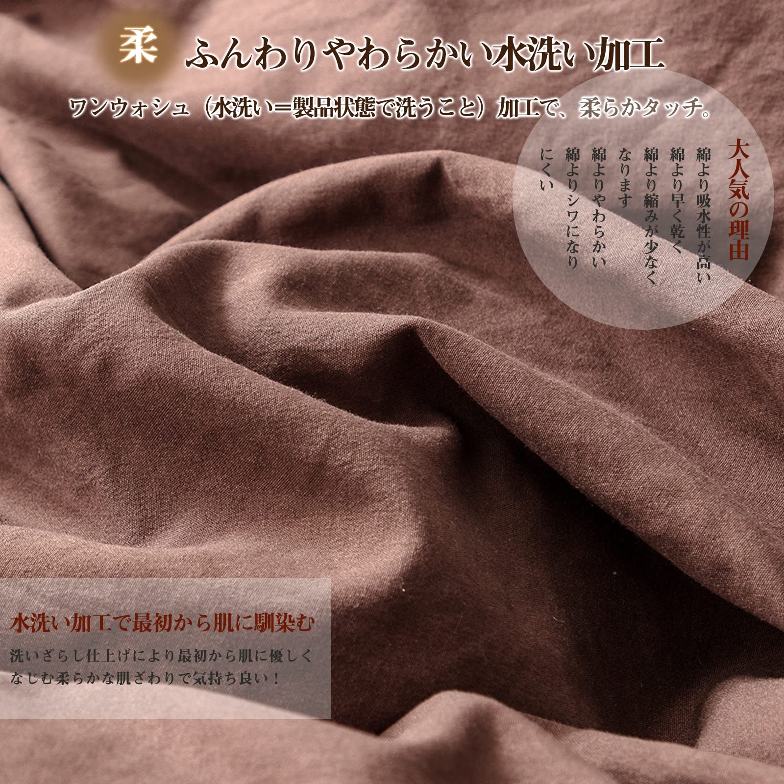 【通気性抜群&オールシーズン使える】水洗い加工で普通のベッドシーツと比べ、優れた吸湿性と通気性で、汗でもベタつかないサラサラ感を保ちます。ムレにくく、春夏秋はサラサラ、冬は暖かくて1年中快適にお休みいただけます。 丁寧に織り上げることにより、耐久性にも優れたしっかりとした生地に仕上がりました。