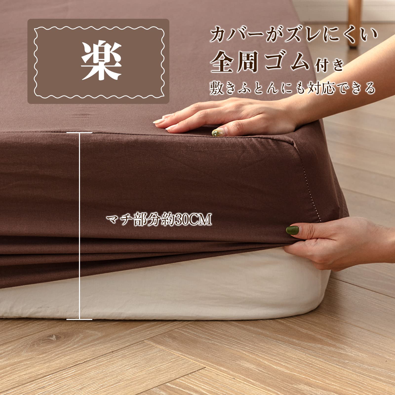 ボックスシーツ シングル ベッドカバー 【洗いざらし & 超柔らかタイプ】 抗菌防臭 吸水速乾 丸洗いOK オールシーズン シーツ マットレスカバー べっとかばー 肌に優しい ベッド/マットレス/敷き布団対応(シングル ブラウン)