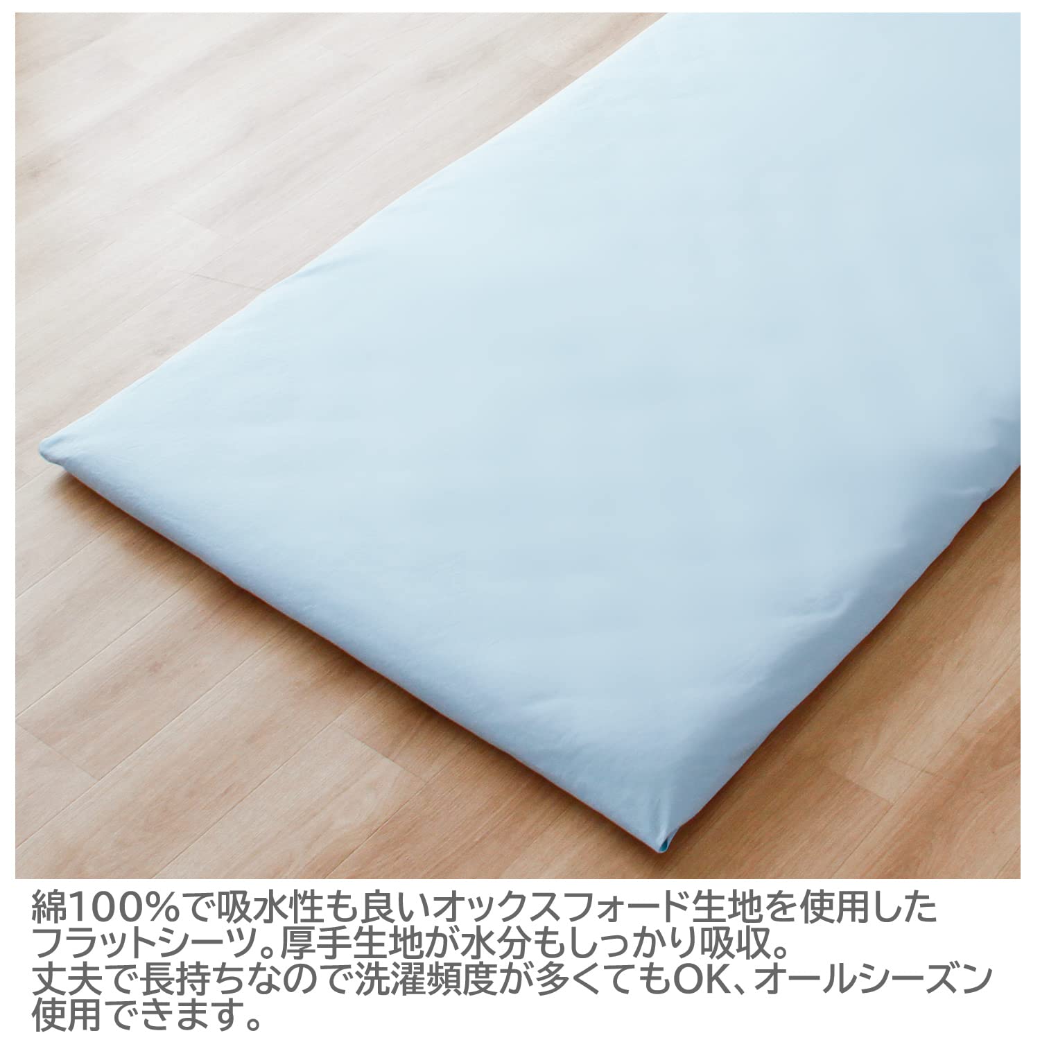 綿100%で吸水性も良いオックスフォード生地を使用したフラットシーツ。厚手生地が水分もしっかり吸収。丈夫で長持ちなので洗濯頻度が多くてもOK、オールシーズン使用できます。