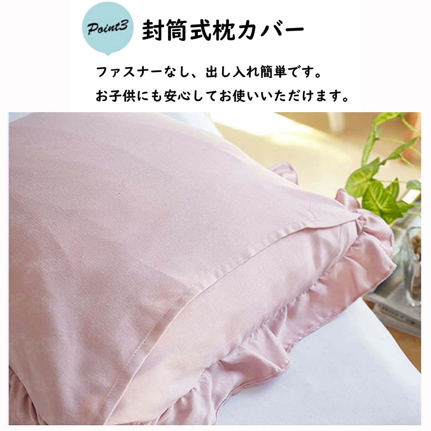 枕カバー 2枚セット フリル ピローケース 43x63 おしゃれ かわいい 封筒式 まくらかばー ピーチスキン加工 抗菌 防臭 洗える ピンク