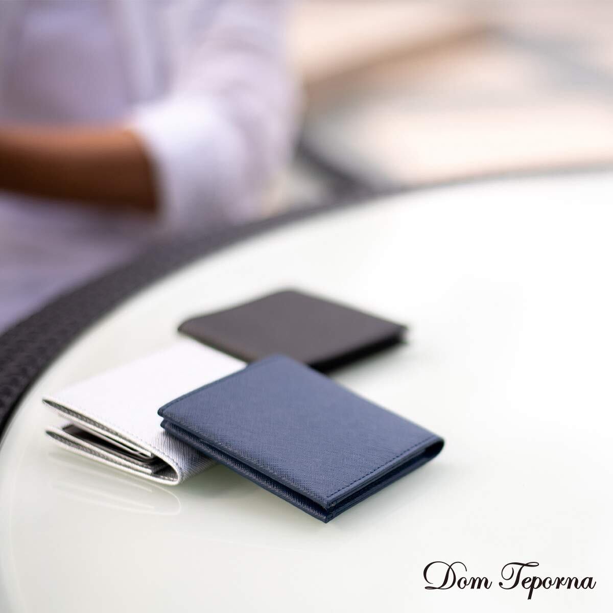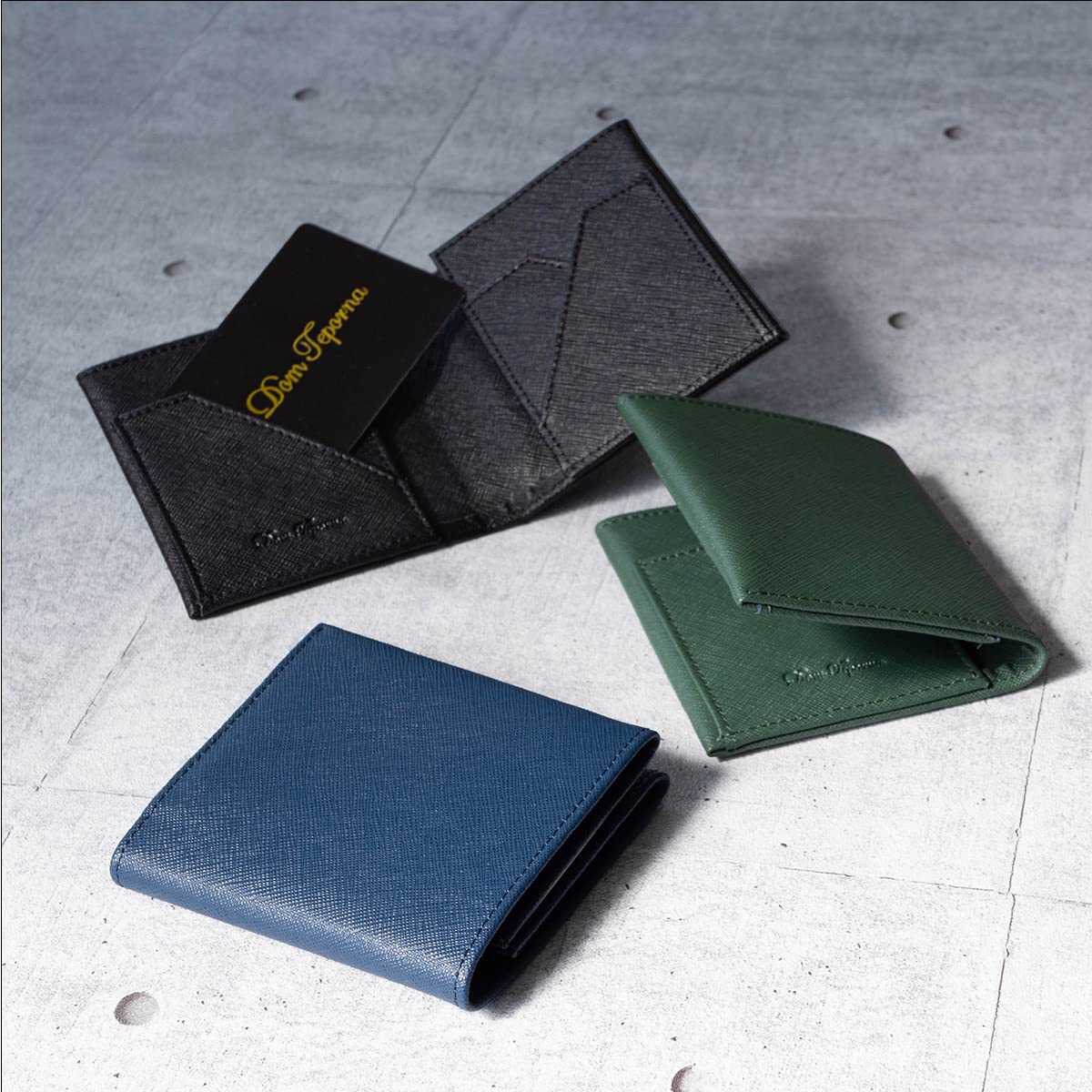 [Dom Teporna] 二つ折り財布 メンズ 小銭入れなし コンパクト 極薄 10mm 薄い 牛革 サフィアーノレザー マネークリップ
