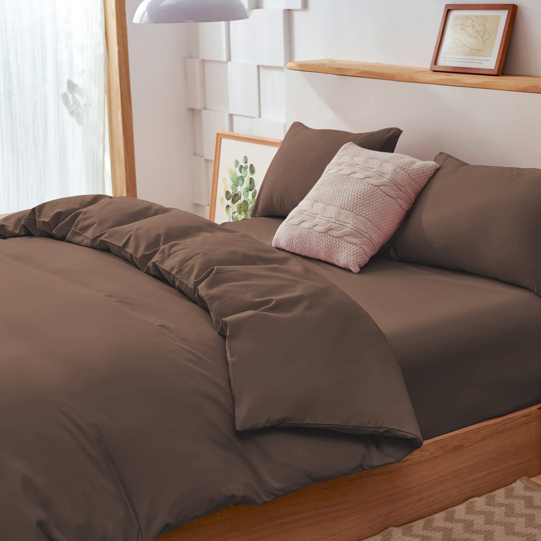 【新着商品】AYO 布団カバー シングル 3点セット寝具カバーセット 掛け布団カバー ボックスシーツ 枕カバー シーツ 洋式・和式兼用 ベッド用 布団用 洗い替え速乾タイプ ピーチスキン加工 防ダニ (ブラウン シングル・3点セット) | asaRulu0511