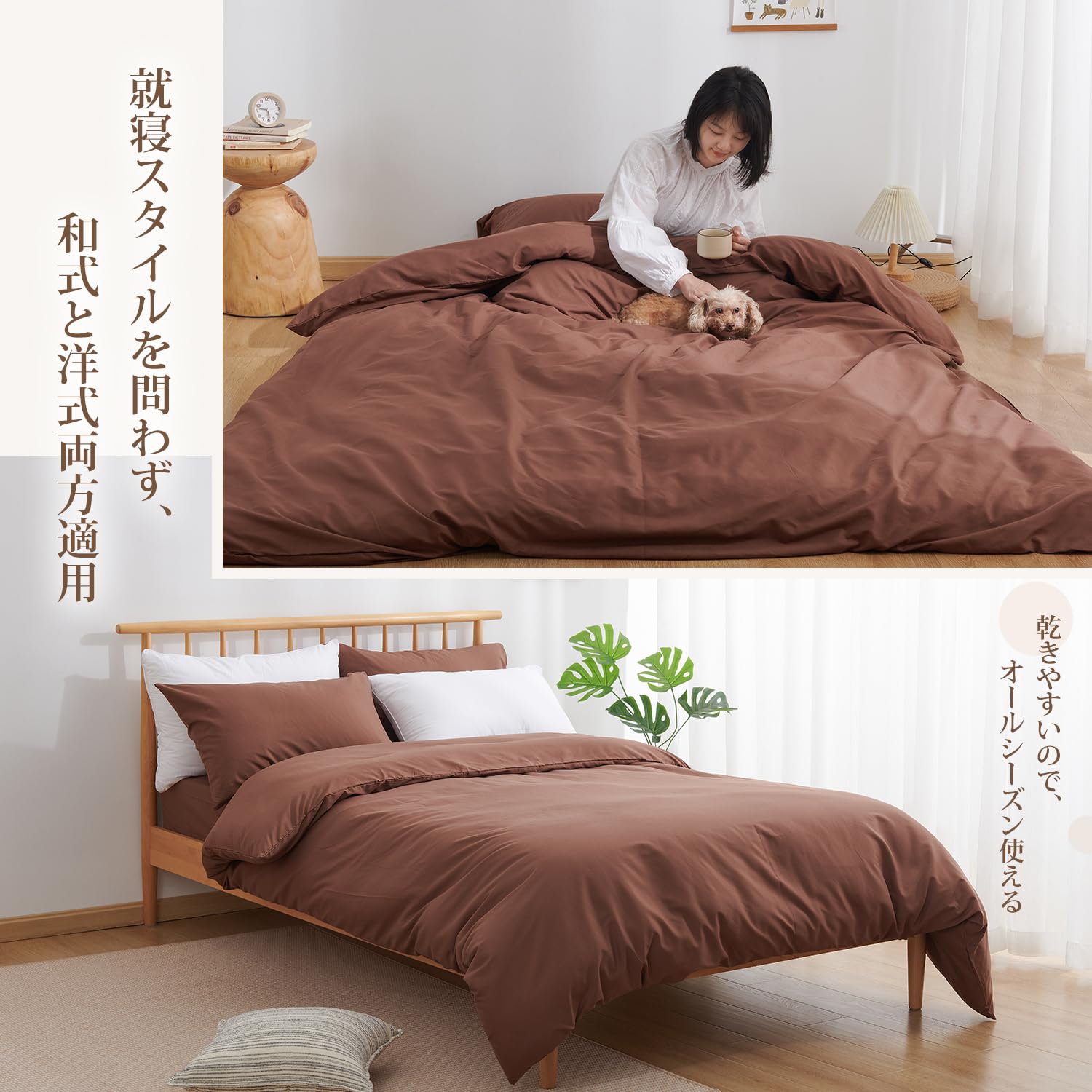 【Amazon.co.jp 限定】クモリ(Kumori) 寝具カバーセット 布団カバーセット 布団カバー シーツ 洋式ベッド・和式布団兼用 掛け布団カバー ボックスシーツ 枕カバー 洗い替え速乾タイプ ピーチスキン加工 シングル・3点セット ブラウン