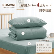 【Amazon.co.jp 限定】クモリ(Kumori) 寝具カバーセット 布団カバーセット 布団カバー シーツ 洋式ベッド・和式布団兼用 掛け布団カバー ボックスシーツ 枕カバー 洗い替え速乾タイプ ピーチスキン加工 セミダブル・4点セット グリーン