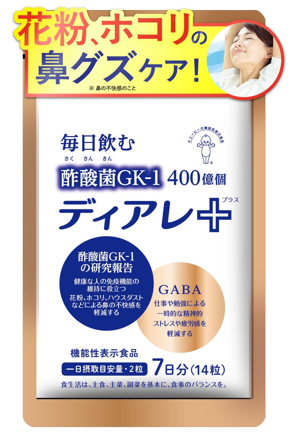 キユーピー ディアレ プラス 7日用14粒 [ 花粉 ホコリ ハウスダスト 等の鼻グズ対策に 免疫 免疫ケア 酢酸菌 gaba ギャバ サプリ サプリメント 乳酸菌 併用可 にごり酢 ]