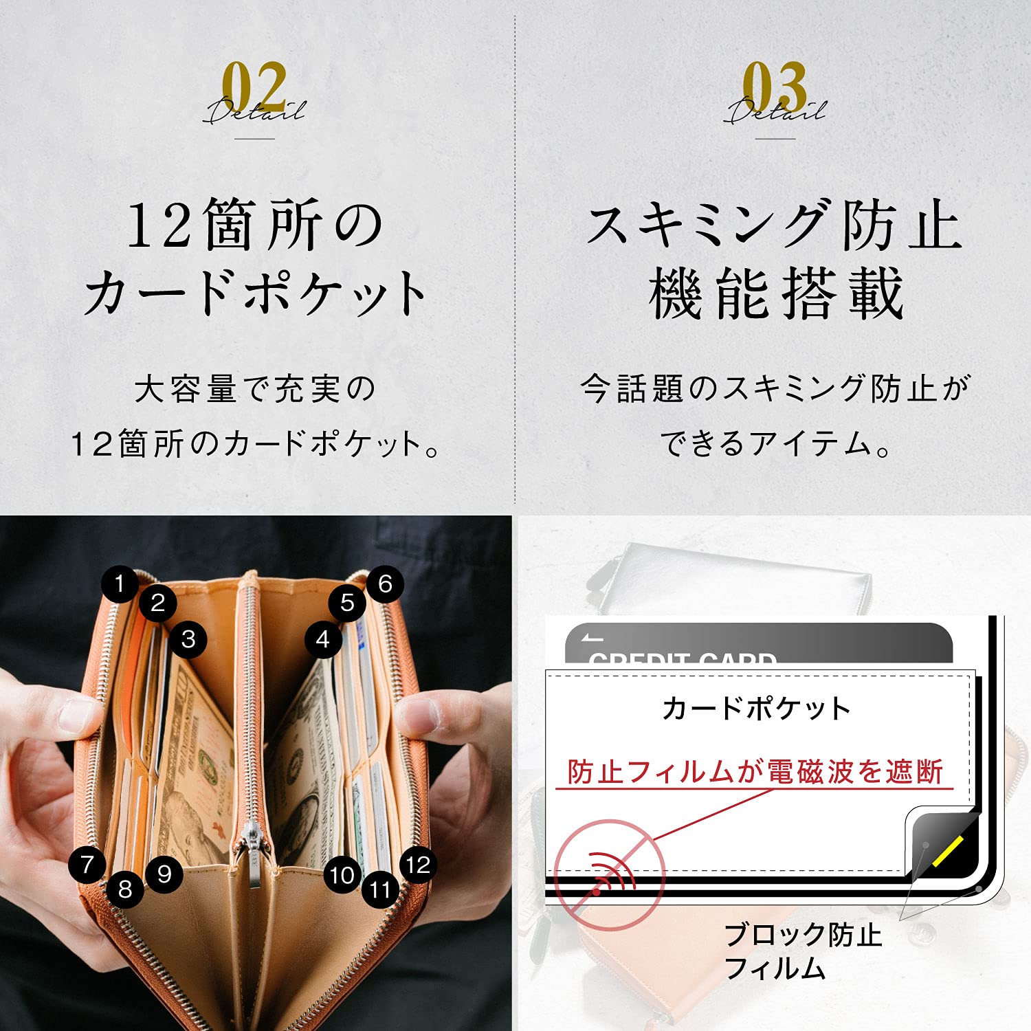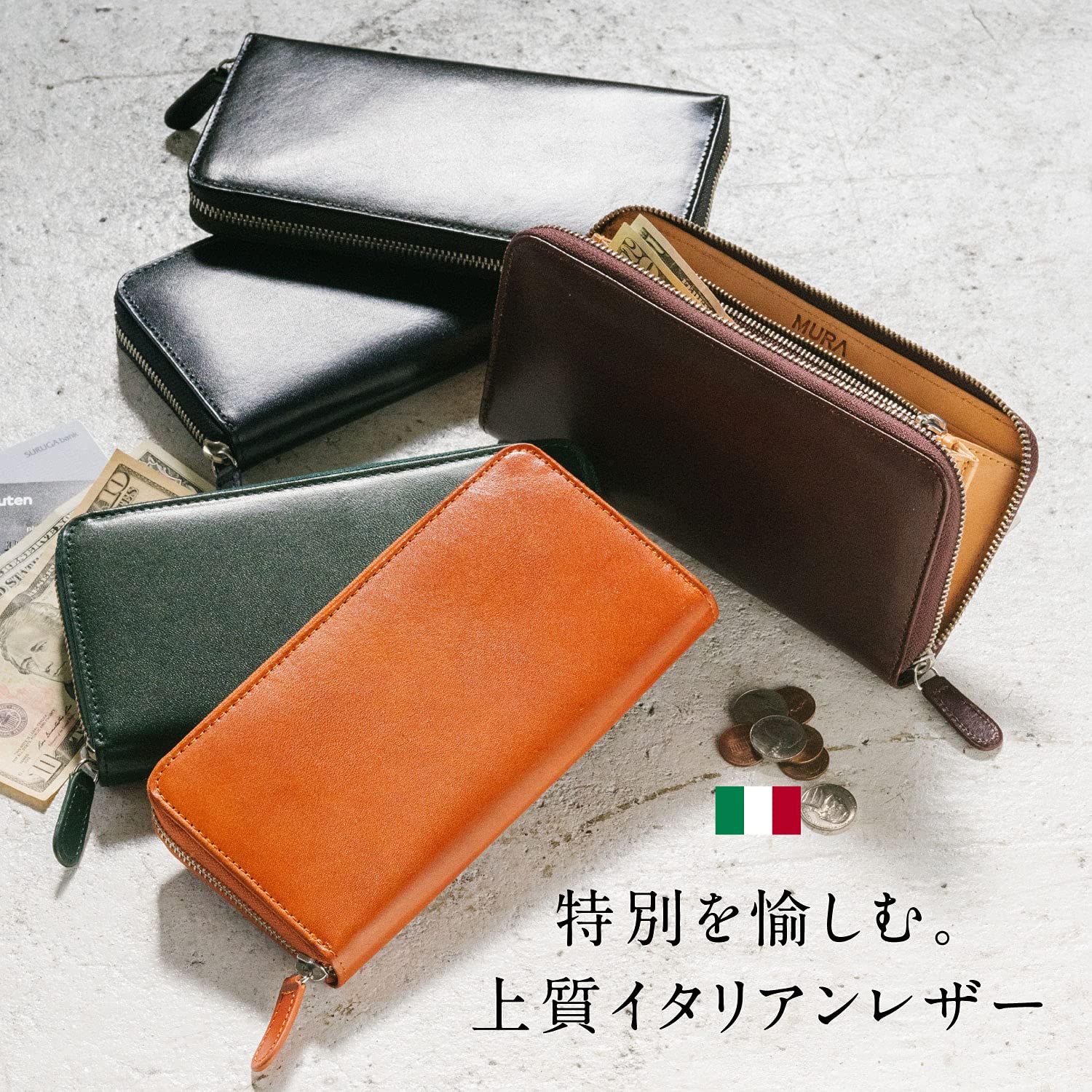 [ムラ] 長財布 イタリアンレザー フルグレインレザー ラウンドファスナー メンズ 財布 本革 スキミング防止 (イタリアン/キャメル)