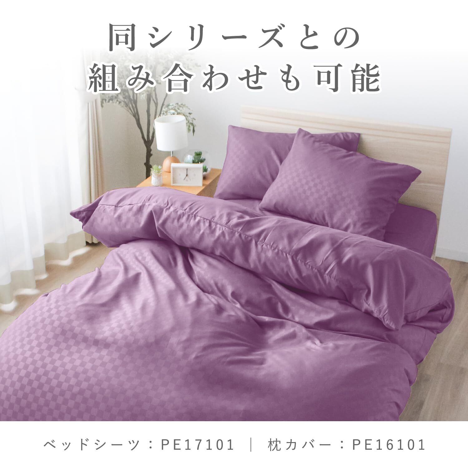 単色だが光の加減で市松柄が現れるモダンテイストの布団カバー。和洋室どちらの部屋にも合わせやすいカラーです。