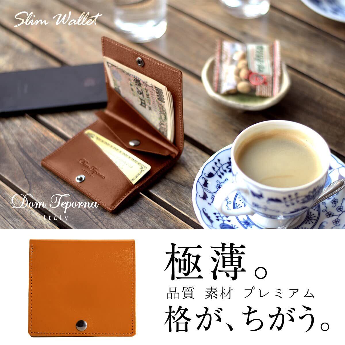Dom Teporna Italy 薄い 二つ折り財布 本革 イタリアンレザー 折りたたみ ミニ財布 メンズ レディース ダークブラウン