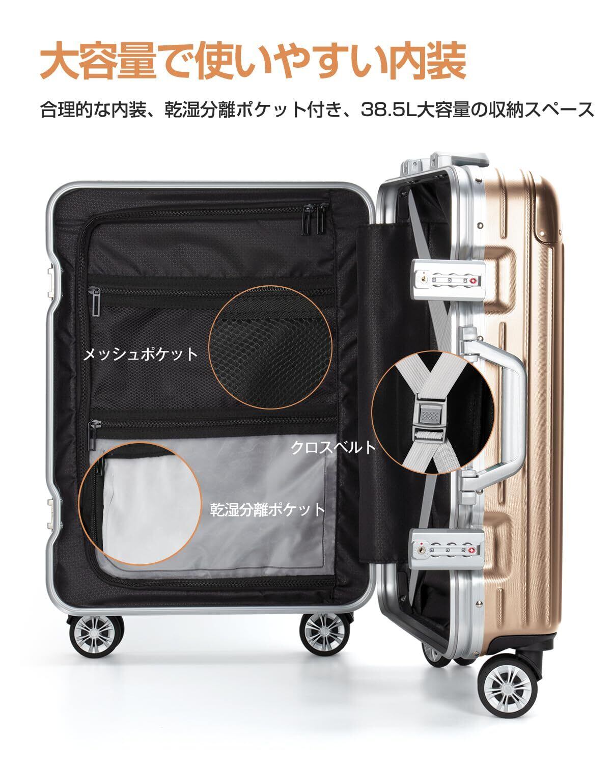 [VARNIC] スーツケース キャリーケース キャリーバッグ アルミフレーム 大型 静音 ダブルキャスター 耐衝撃 360度回転 TSAダイヤルロック 機内持込 旅行 出張 (S, ゴールド)