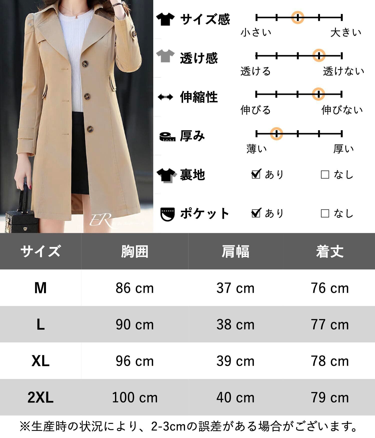【2022最新】[エムエルーセ] トレンチコート スプリングコート ミドル丈 薄手 ライトアウター おしゃれ きれいめ 春 秋 レディース