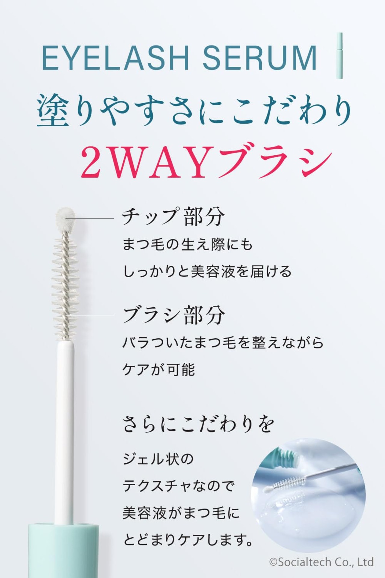 ✨【使いやすい2WAY形状】チップ+スクリューブラシの2WAY形状で、まつ毛全体はもちろん、目頭・目じり・目元・涙袋など細かい部分にも美容液を塗布できる塗りやすいストレスフリー設計。眉毛・涙袋の保湿ケアにも使えるオールインワンアイケア形状です。