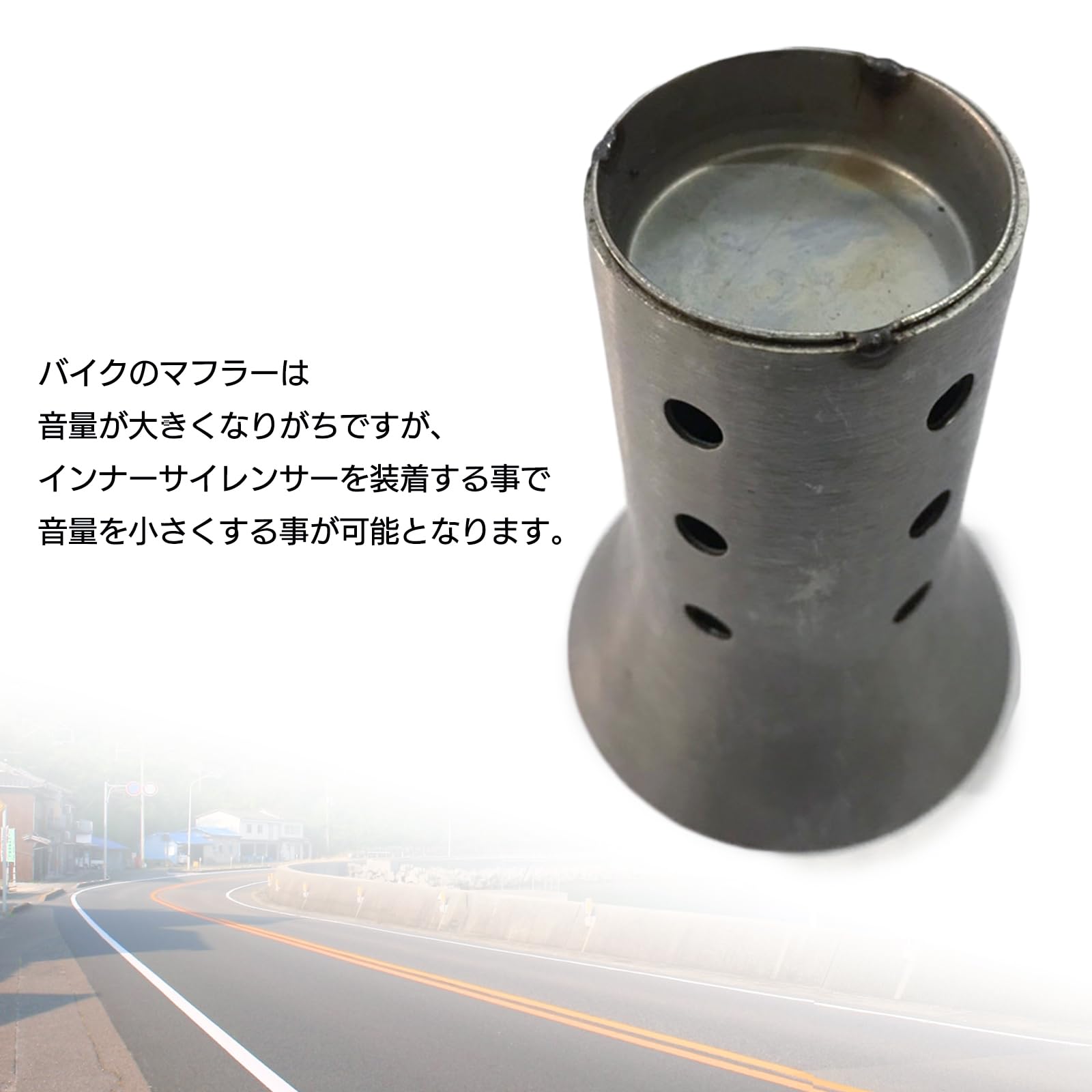 バイクのマフラーは純正品や社外品に関わらず、音量が大きくなりがちですが、このサイレンサーを取り付けることで消音効果を得られるだけでなく、エンジンの音質を調整する役割も果たします。適度な低音を残しつつ、耳障りな高音域を抑えることが可能です。