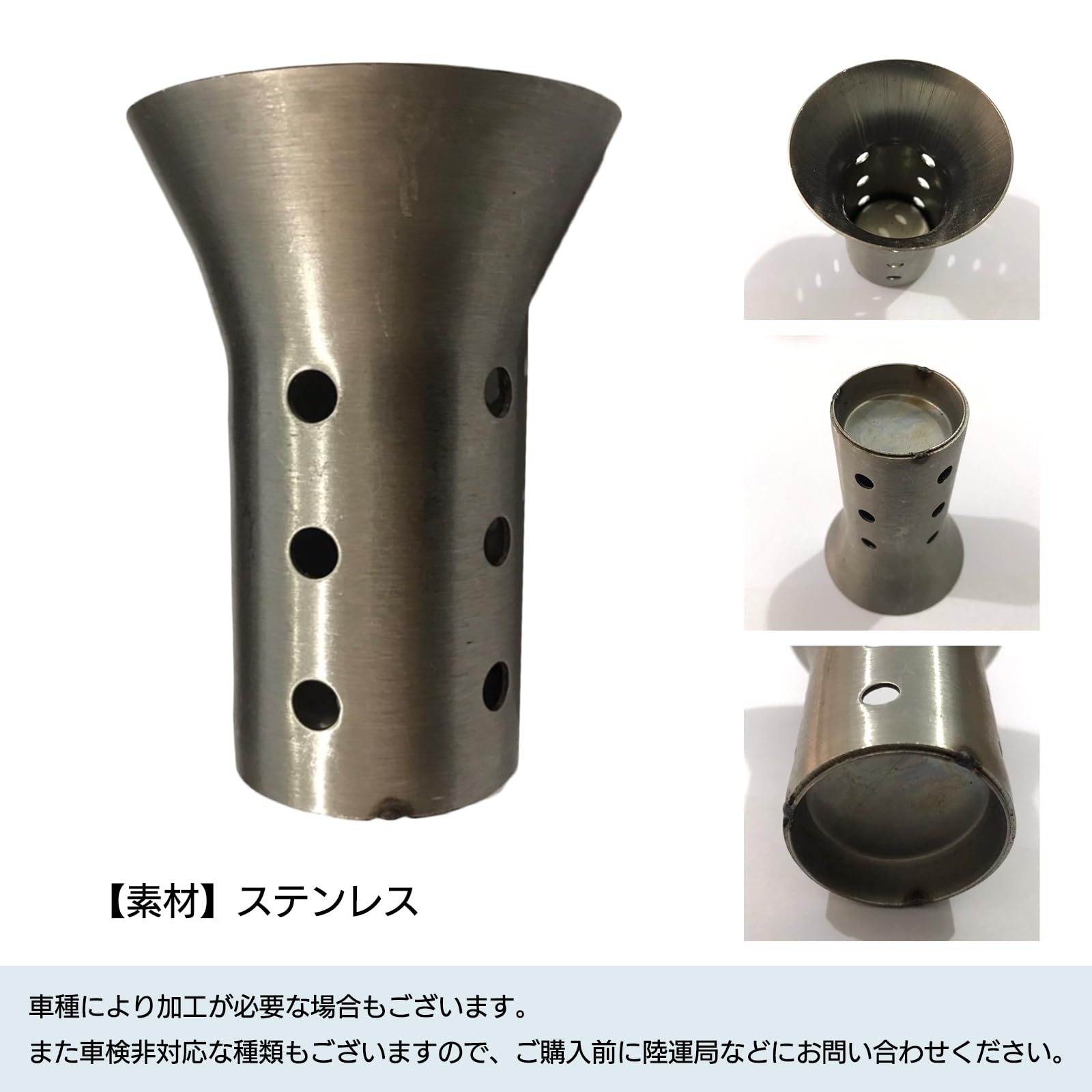 【素材】ステンレス製で耐久性が高く、長期間の使用にも耐える設計です。高温にさらされるエキゾーストパーツとして、腐食に強いステンレス素材を採用することで、メンテナンスの手間を軽減し、長くご愛用いただけます。