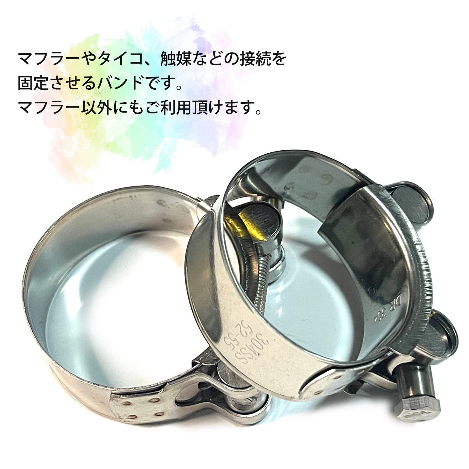 2個セットで提供されるため、前後の接続部に使用したり、スペアとして備えておくことも可能です。マフラーシステム全体の安定性を向上させ、振動や衝撃によるズレを防ぎます。ステンレス製のため、錆びに強く、長期間使用しても劣化しにくいのが特徴です。サイレンサーパイプやエキゾーストパイプの固定にも適しており、幅広い用途で活用できます。
