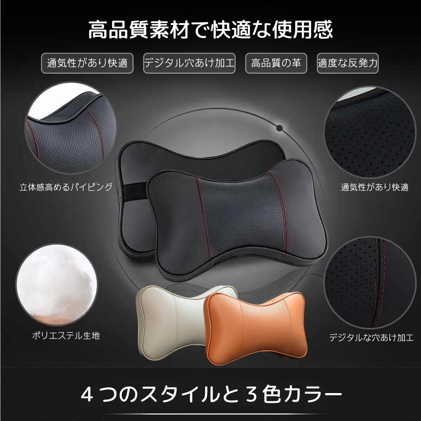 車ヘッドレスト ネックパット ネックピロー クッション ネックサポーター 長距離運転 2個(ベージュ)