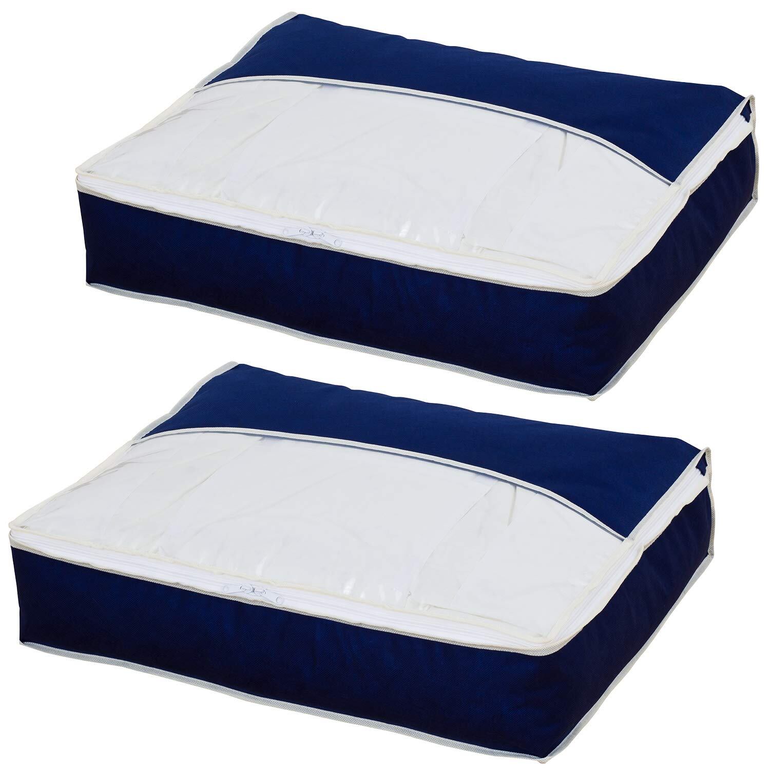 商品名:羽毛布団を薄く収納するケース 紺 2枚組