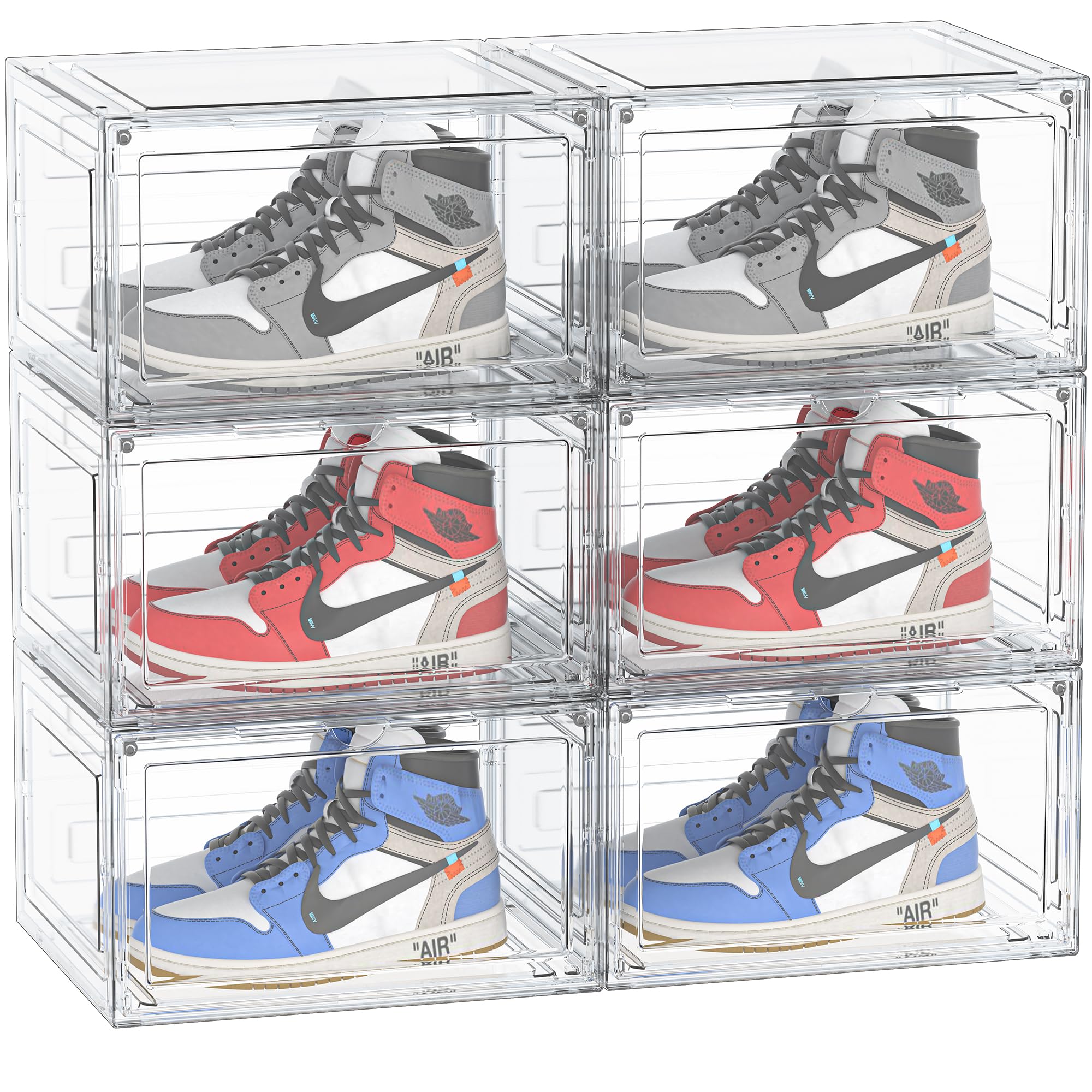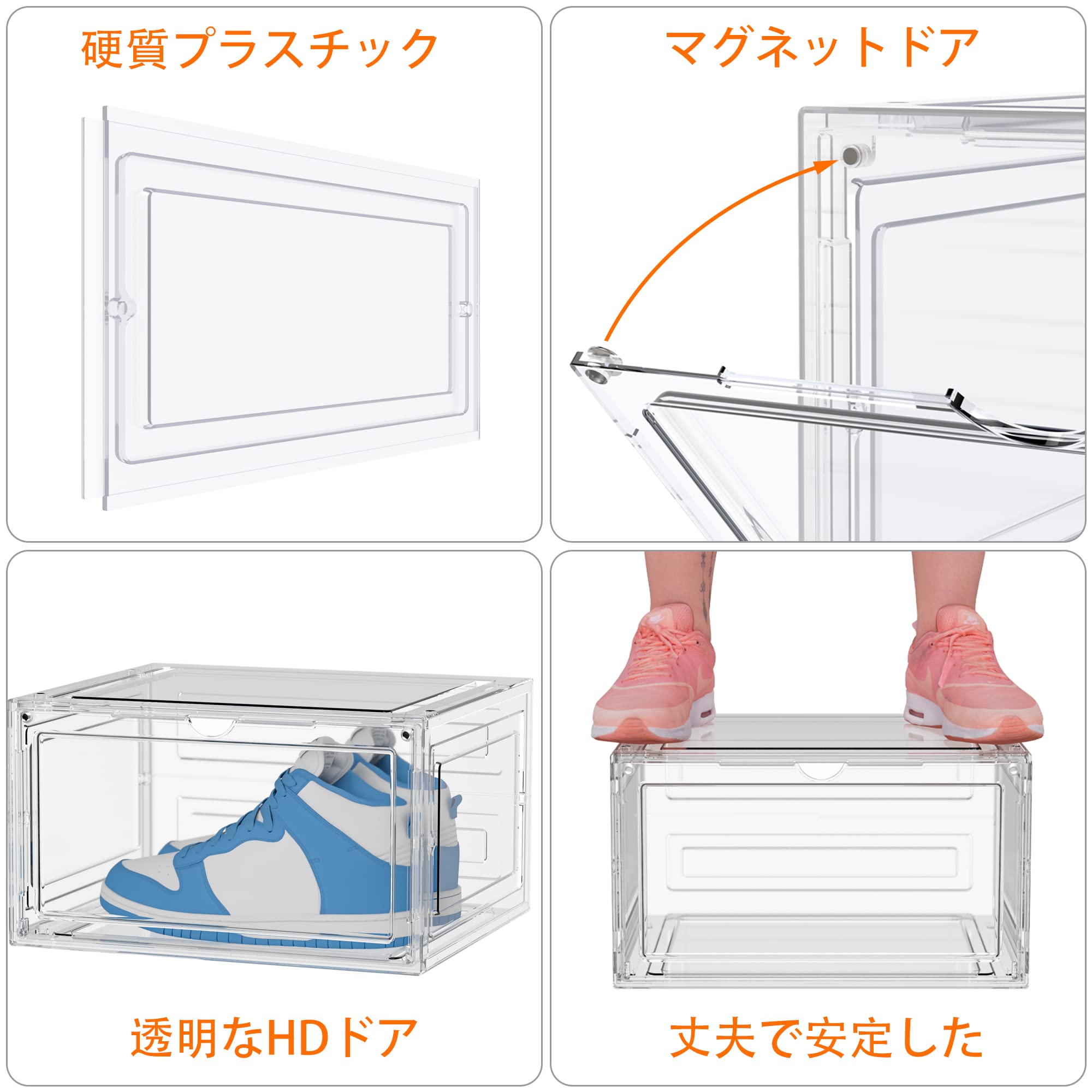【数量限定】シューズボックス 6個大容量収納ボックス 透明なフロントパネル 磁石開閉扉スニーカーボックス 小物文房具化粧品収納ケース 靴ケース 收纳靴箱 男女兼用シューズラッ 玄関靴棚 組立て式 扉付き (トランスペアレント) | asaRulu0511
