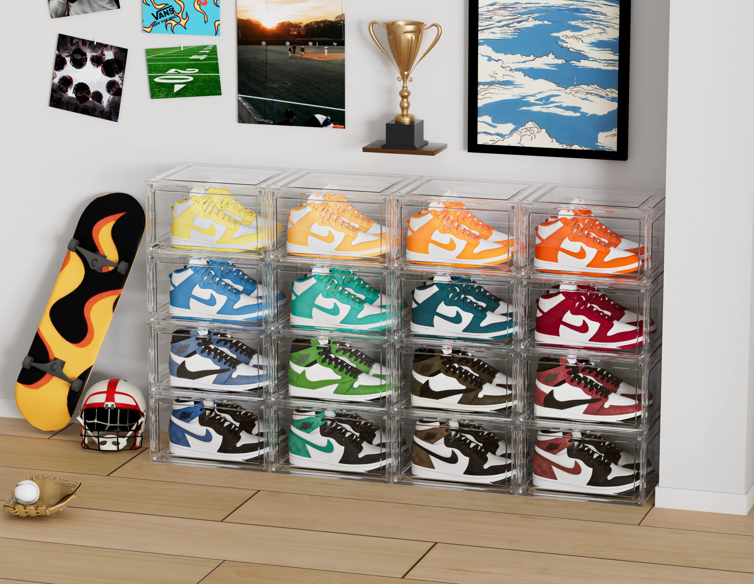 【クリアディスプレイケース】透明度の高いデザインで、この美しい箱の中でスニーカーを披露して大満足になると思います!洋服、置物、トイレタリーなどの収納にも使え、お部屋やワードローブにぴったりです。