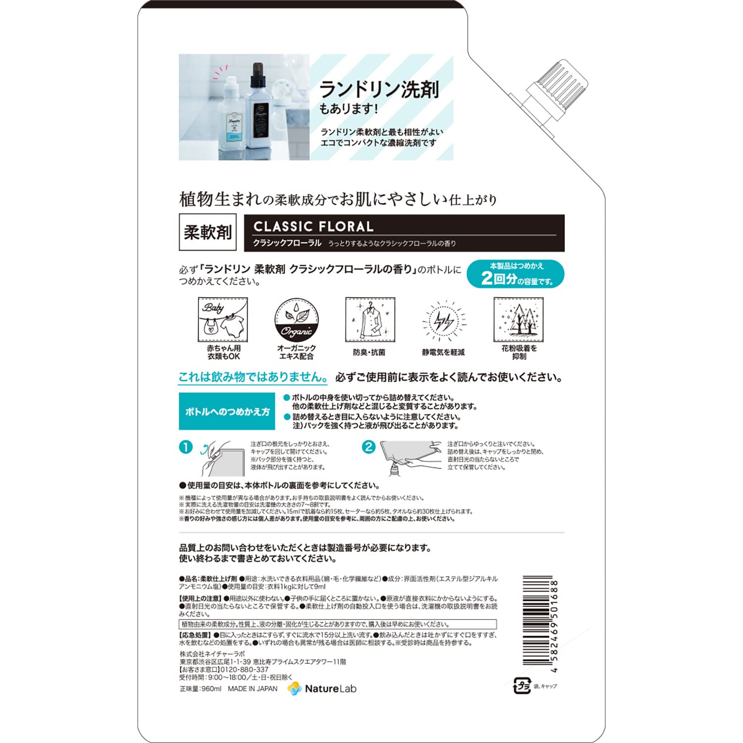 ランドリン 柔軟剤 大容量 クラシックフローラル 詰め替え 960ml