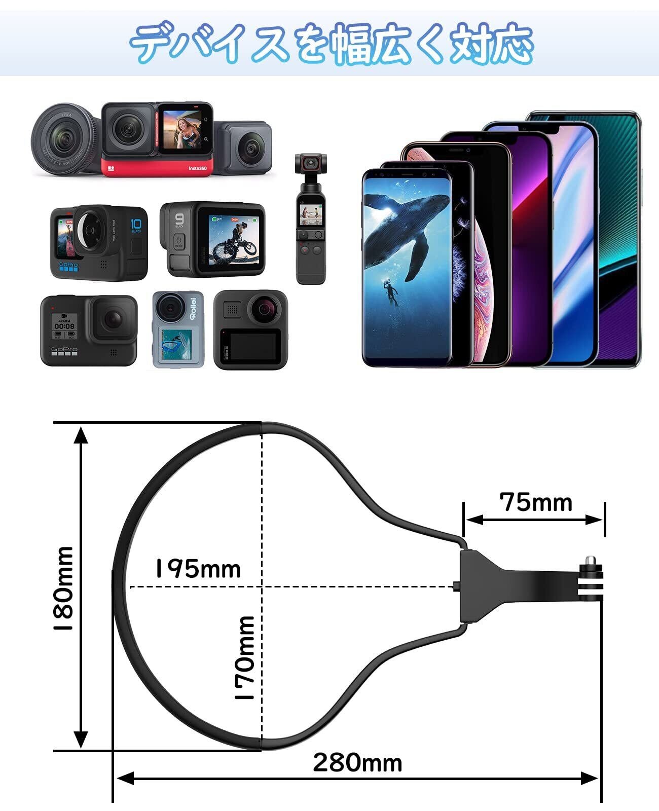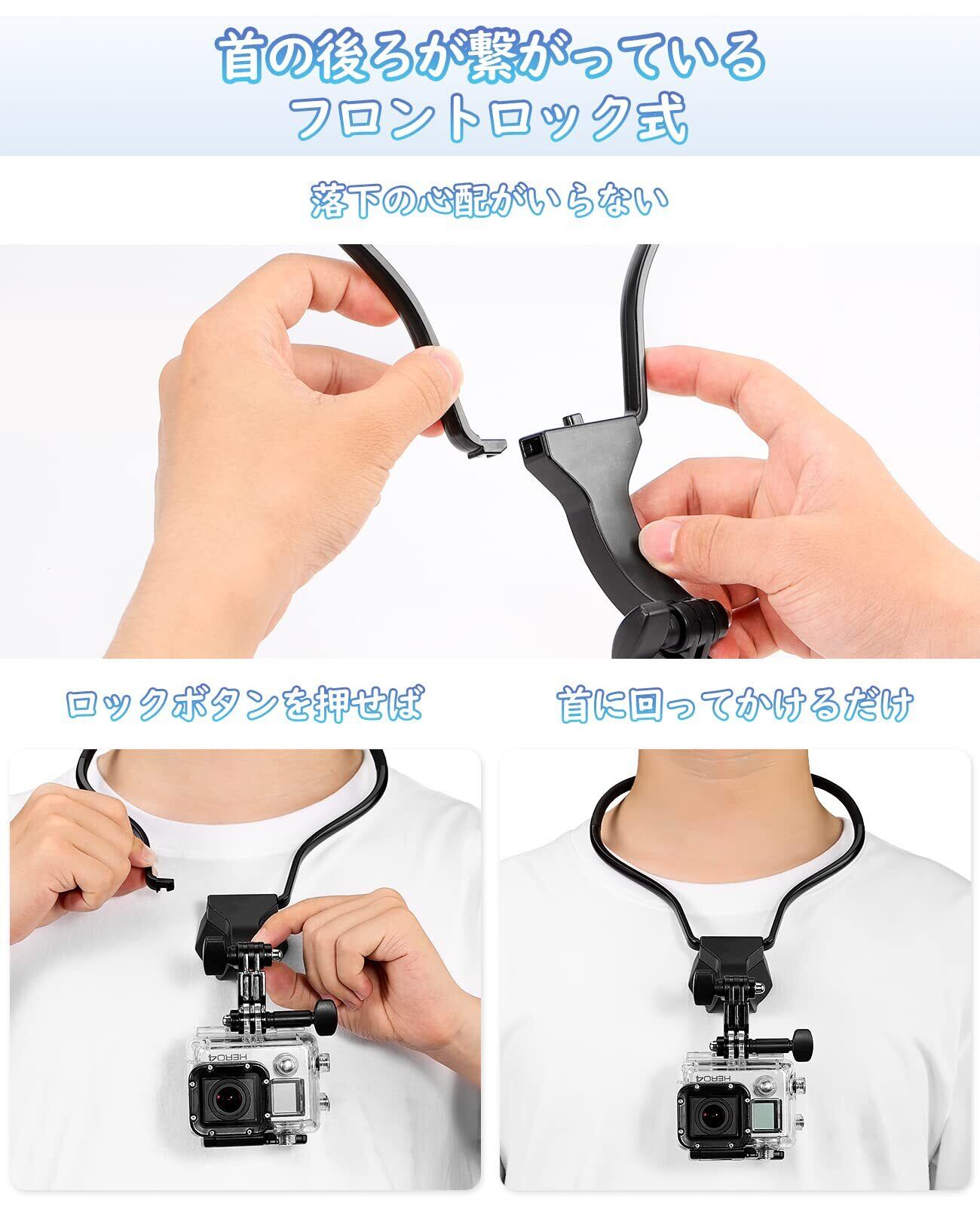 首掛けスマホホルダー ATiC Gopro用 ゴープロ用 ネックレス式マウント スマホネックホルダー カメラマウント アクションカメラ用首掛け 多角度調整可能 ぶら下げる ハンズフリーホルダー 手ぶらで撮影 Black