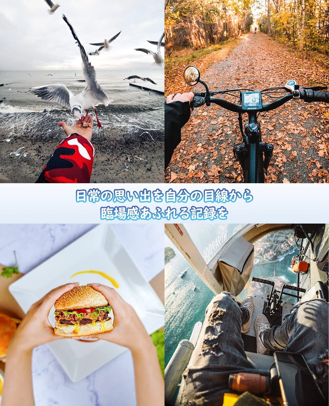 「臨場感のあふれる撮影に」 首からぶら下げて胸骨辺りに保持されて撮影できるようになっている仕様となっており、マイクも口元に近くなるため、小さな声でもしっかりと拾って臨場感のある仕上がりになるように自分の目線でよりリアルな動画を撮影することができます。