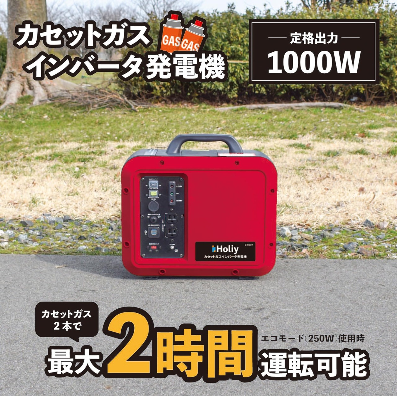 【在庫セール】Holiy カセットガスインバータ発電機 23907 定格出力1.0kVA USBポート×2付き