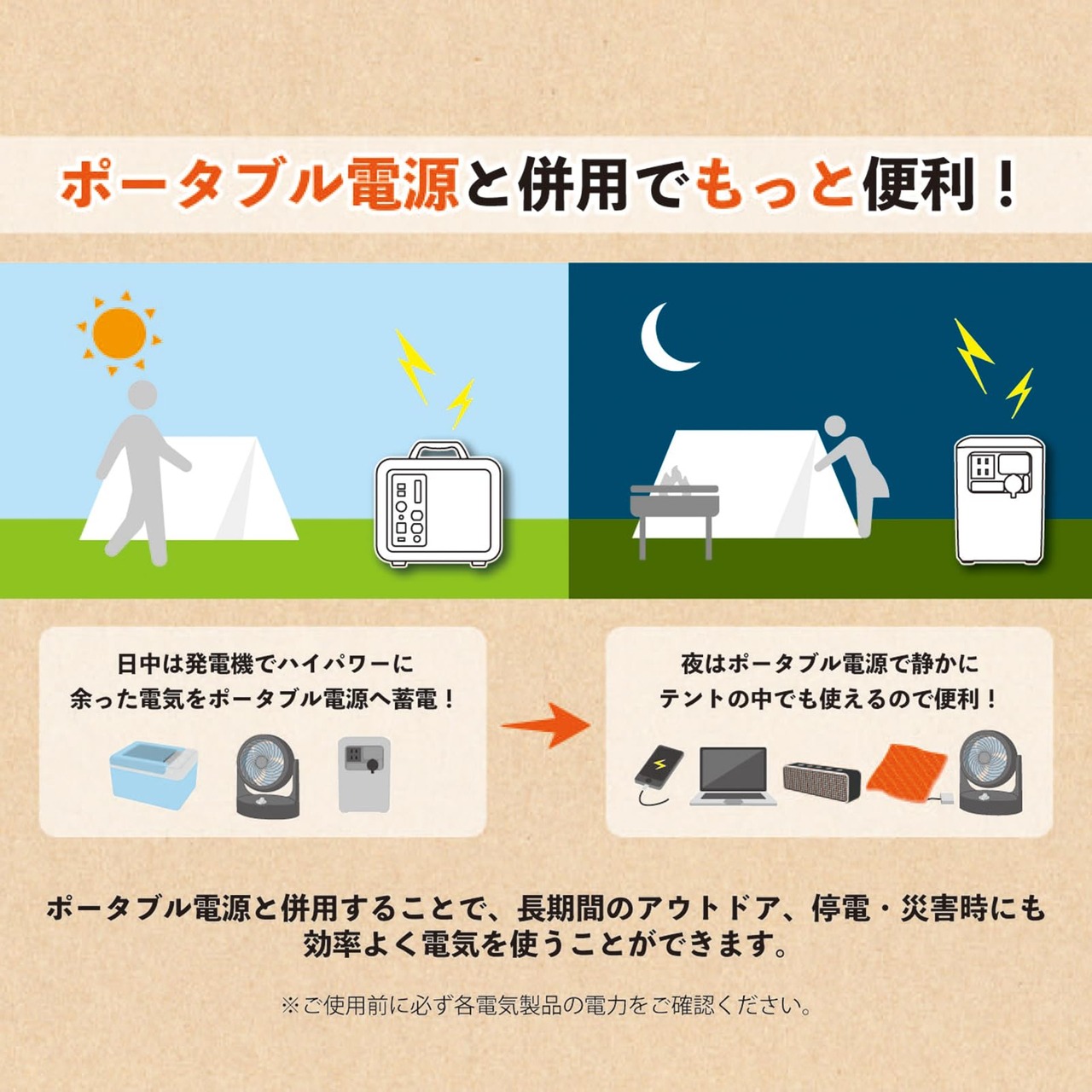 Holiy カセットガスインバータ発電機 23907 定格出力1.0kVA USBポート×2付き