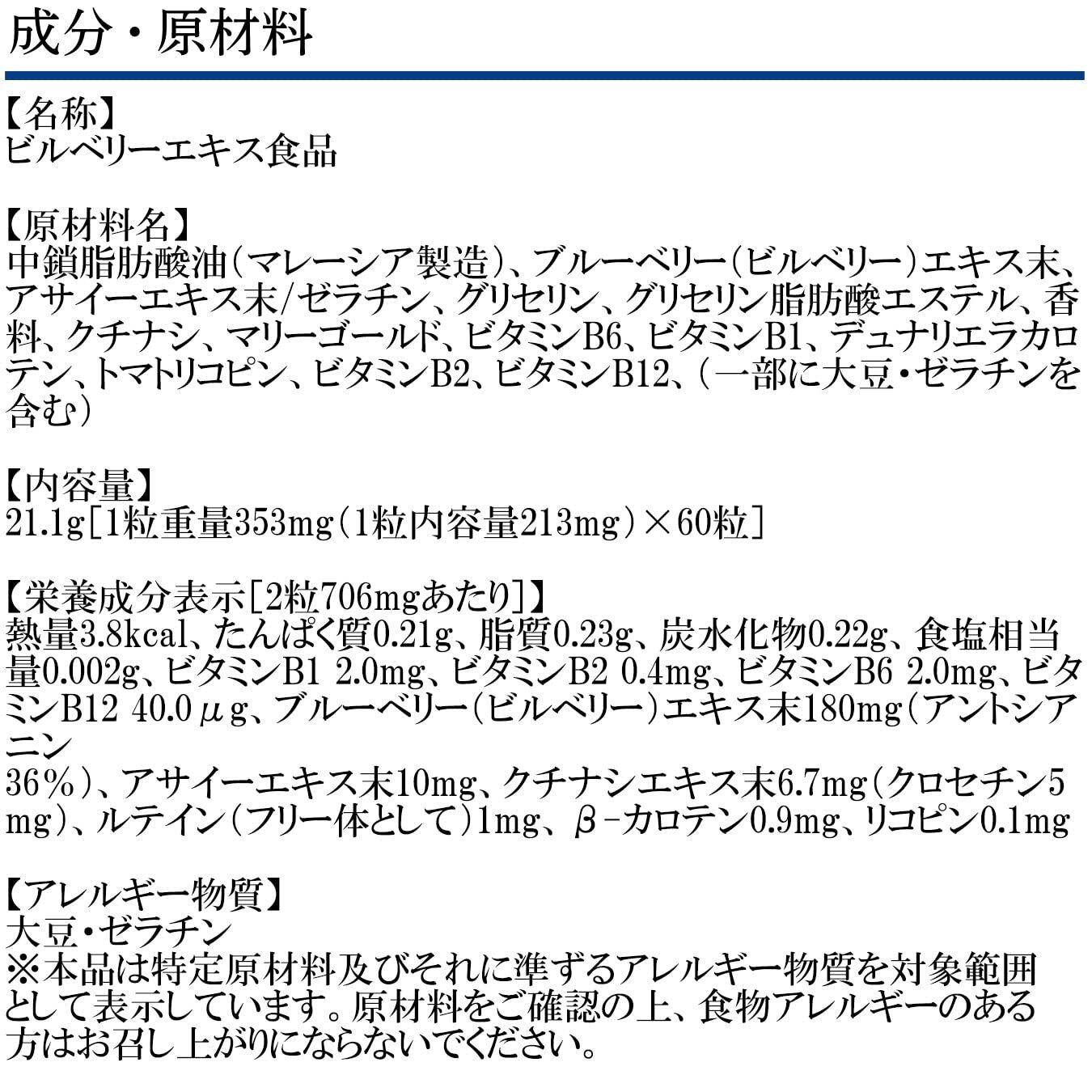 ビルベリーエキス末、クロセチン、アサイーエキス末のほか、