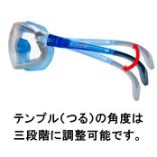 ●レンズ色:クリア●テンプルカラー:ブルー●幅(mm):151●高さ(mm):54●長さ(mm):151●コーティング:VF-P(防曇)●防曇加工:○●防傷加工:○●UVカット:○●角度調整:○●ノーズパッド:○●JIS規格 T8147適合品