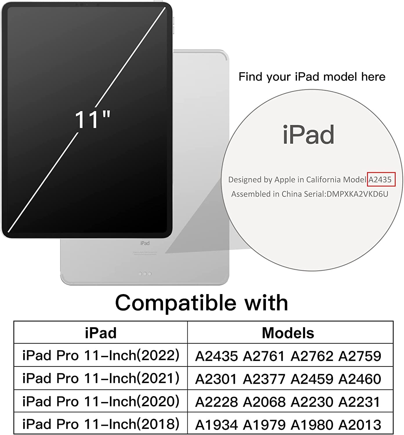 【対応機種】:2022年新発売のiPad Pro 11第4世代11インチ【モデル:A2435/A2759/A2761/A2762】2021/2020年発売のiPad Pro 11インチ (第3世代・型番: A2377 A2459 A2301 A2460、第2世代・型番: A2228 A2068 A2230 A2231) のために設計されています。2018年発売のiPad Pro11 (第1世代・型番: A1980 A2013 A1934 A1979)にも兼用してます。️ご注意: 当商品はiPad Pro 11 インチ専用ケースなので、他の機種には対応できません。