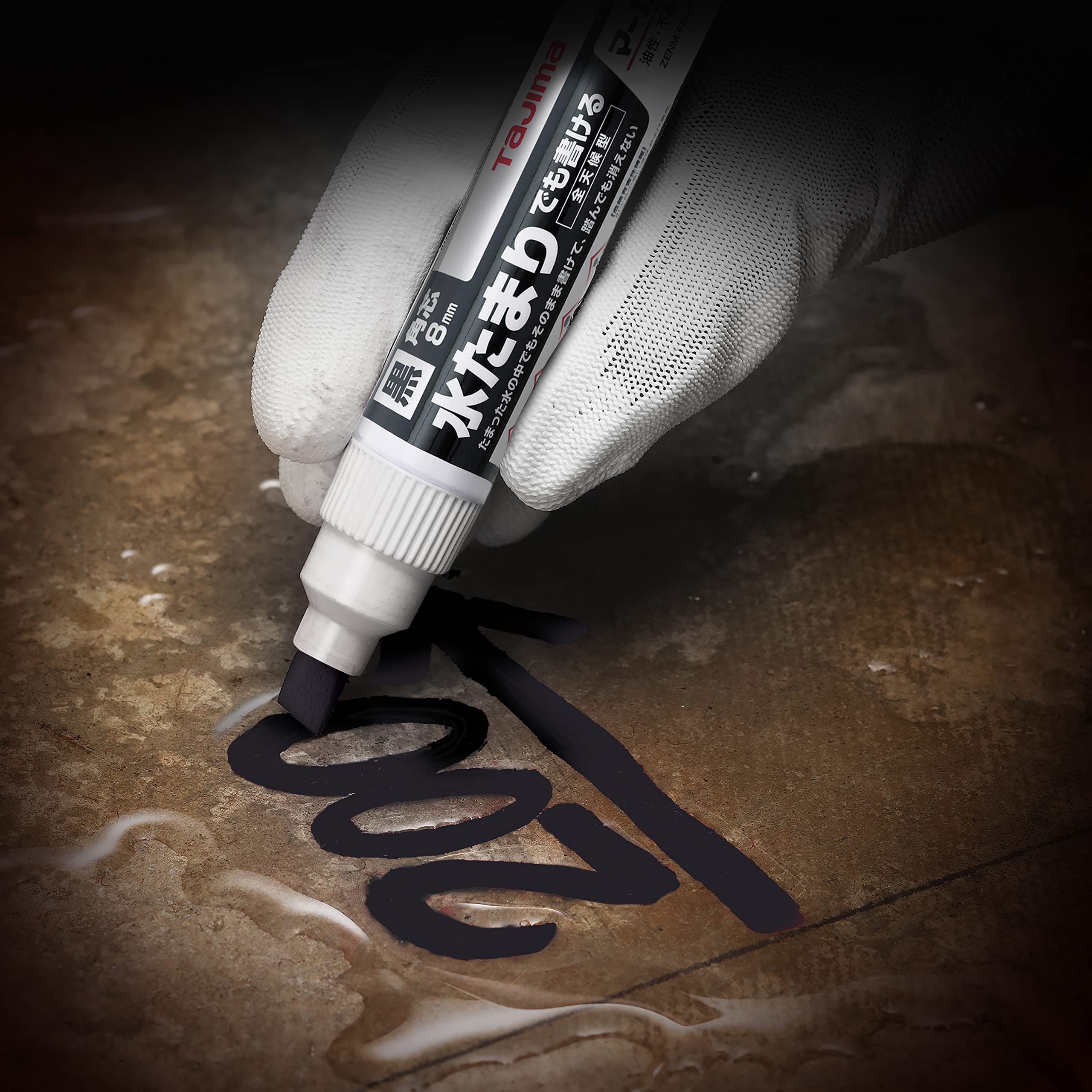 ●雨天時や雨あがりの濡れた面にもそのまま筆記できます。●にわか雨でも、雨上がりでも筆記できるため作業を中断させません。●筆記線は踏んでも擦っても消えたりかすれたりしない高耐久インクです。●コンパネやコンクリート面の筆記でも減りの少ない耐久芯を採用しています。●定番の黒・赤・白・青に加えて、蛍光イエロー・蛍光ピンクもラインナップしています。●8mm×4mmの角芯で太字/中字も自在に筆記できます。