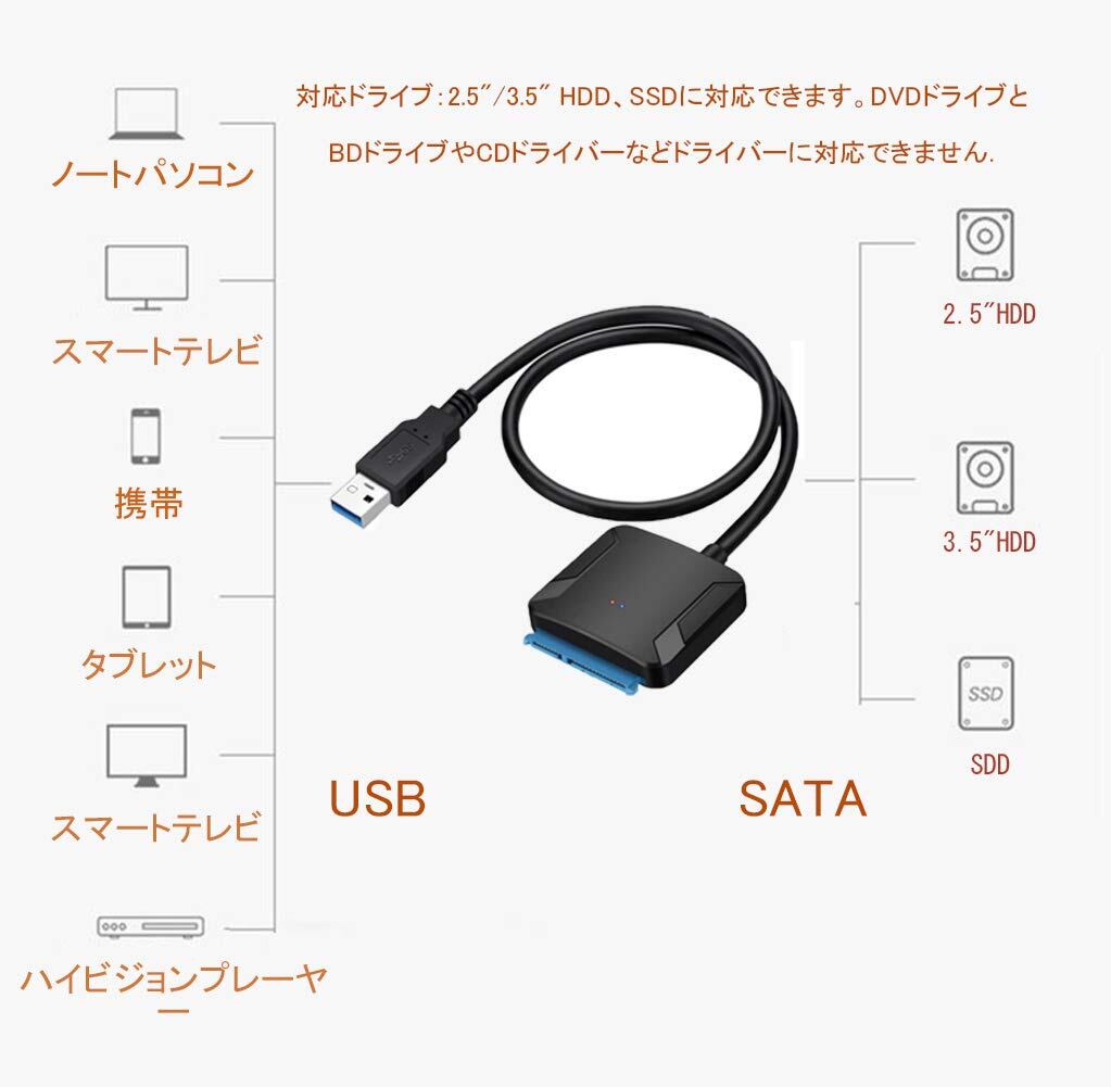【2022最新】WOSOB SATA USB 変換ケーブル hdd 3.5 usb 2.5/3.5インチ 変換アダプター SSD HDD データ取り出しSATA3 USB 3.0 変換ケーブル UASP対応 高速転送 最大6TB | asaRulu0511