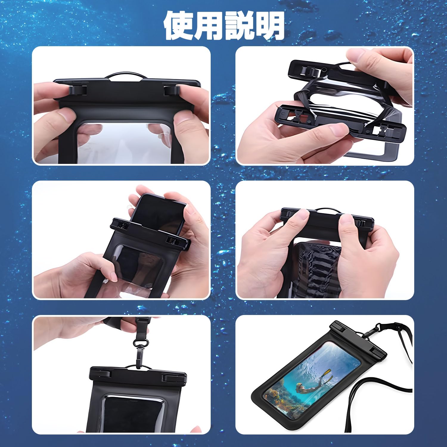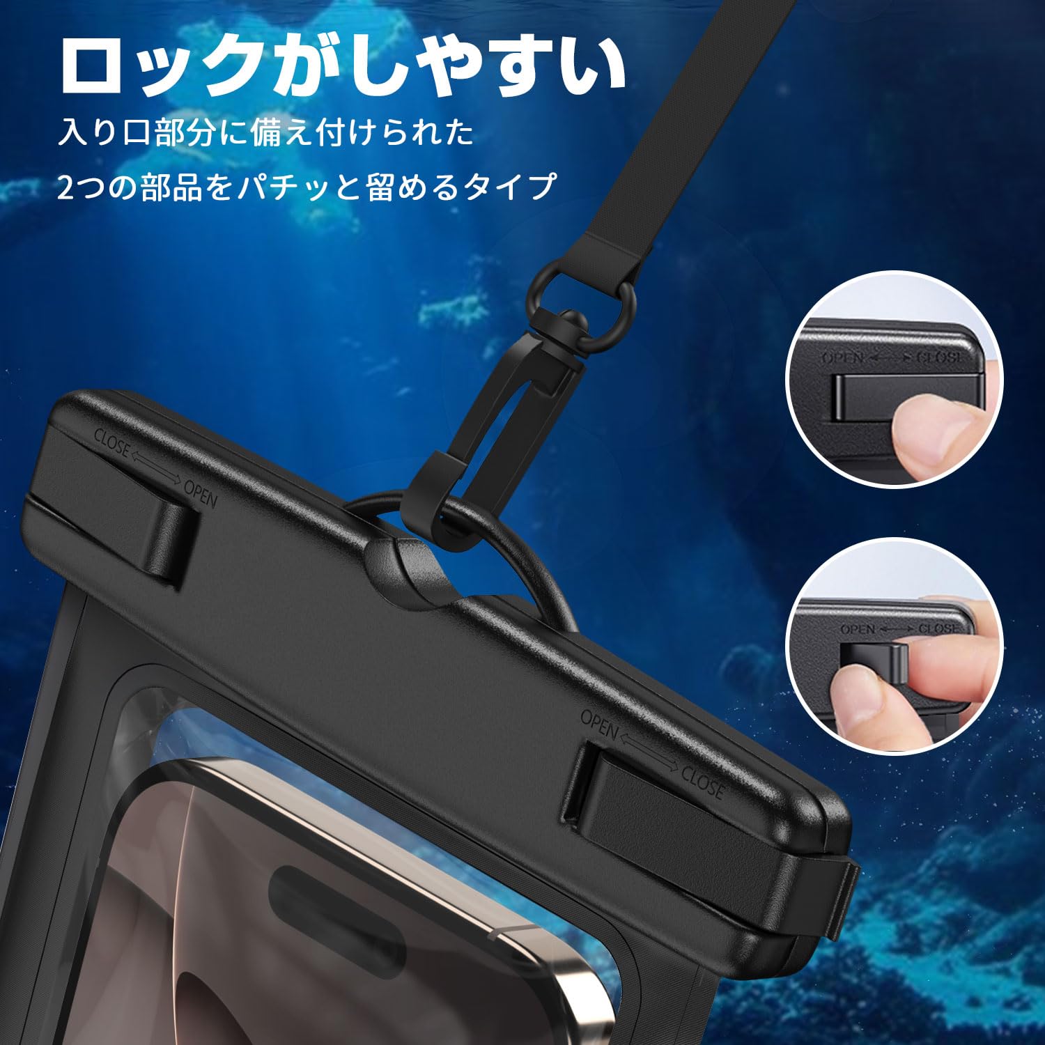 【新着商品】Sunytree スマホ 防水ケース 海 【2枚セット&熱圧技術】スマホケース IPX8認定 水中・水上で操作できる 良いタッチ感度 指紋認証/顔認証 ロックがしやすい サイドボタンが押しやすい ストラップ付き 首掛け 高透過率 7インチ以下全機種対応 防水カバー 水中撮影 お風呂 釣り プール携帯 海上アスレチックパークなど適用(ブラック2枚) | asaRulu0511