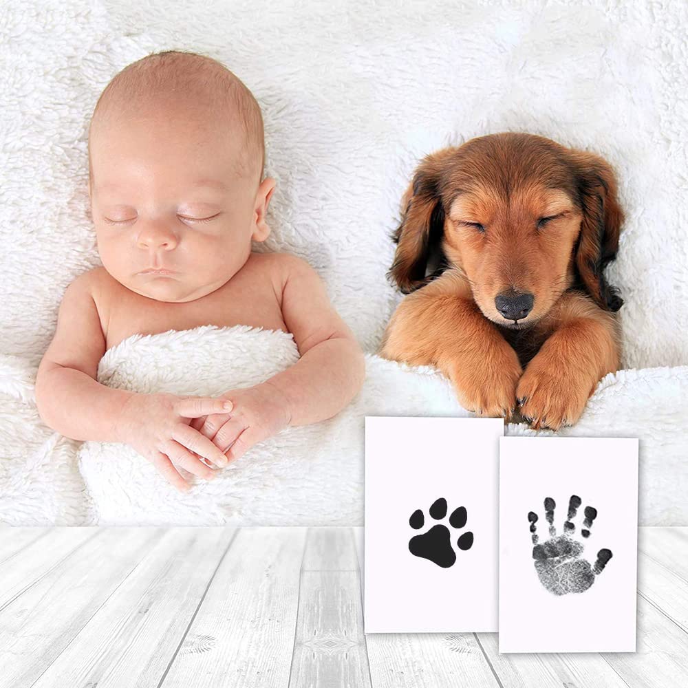 赤ちゃん 汚れないインク 手形 足形キット ベビーフレーム ギフト 出産祝い 成長記録 新生児 1歳誕生日 猫犬手足型 記念品 (2セット)