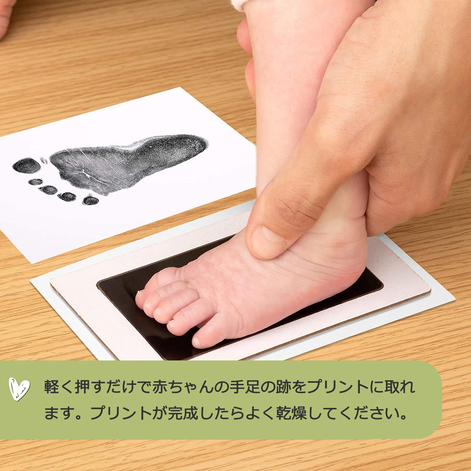 【使用簡単】軽く押すだけで赤ちゃんの手足の跡をプリントに取れます。プリントが完成したらよく乾燥してください。