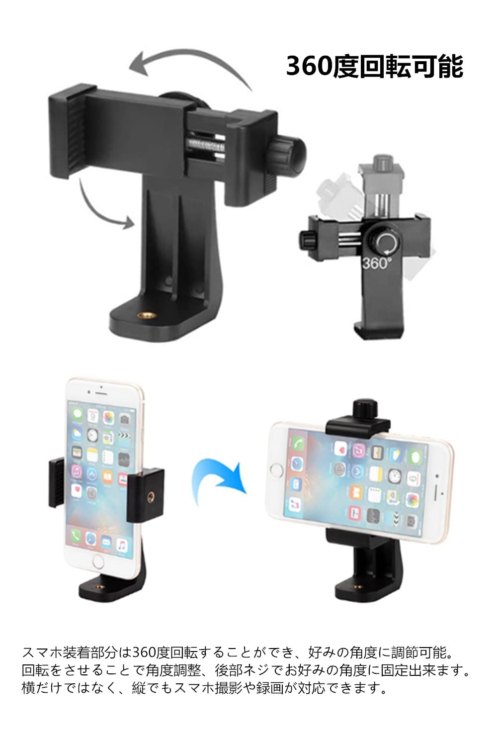 スマホホルダー スマホクリップ 360°回転 角度調整 三脚 一脚 自撮り棒用 アダプターホルダークリップ 三脚スタンド 三脚アダプター iphone/sony xperia/LG/Google Nexus等対応