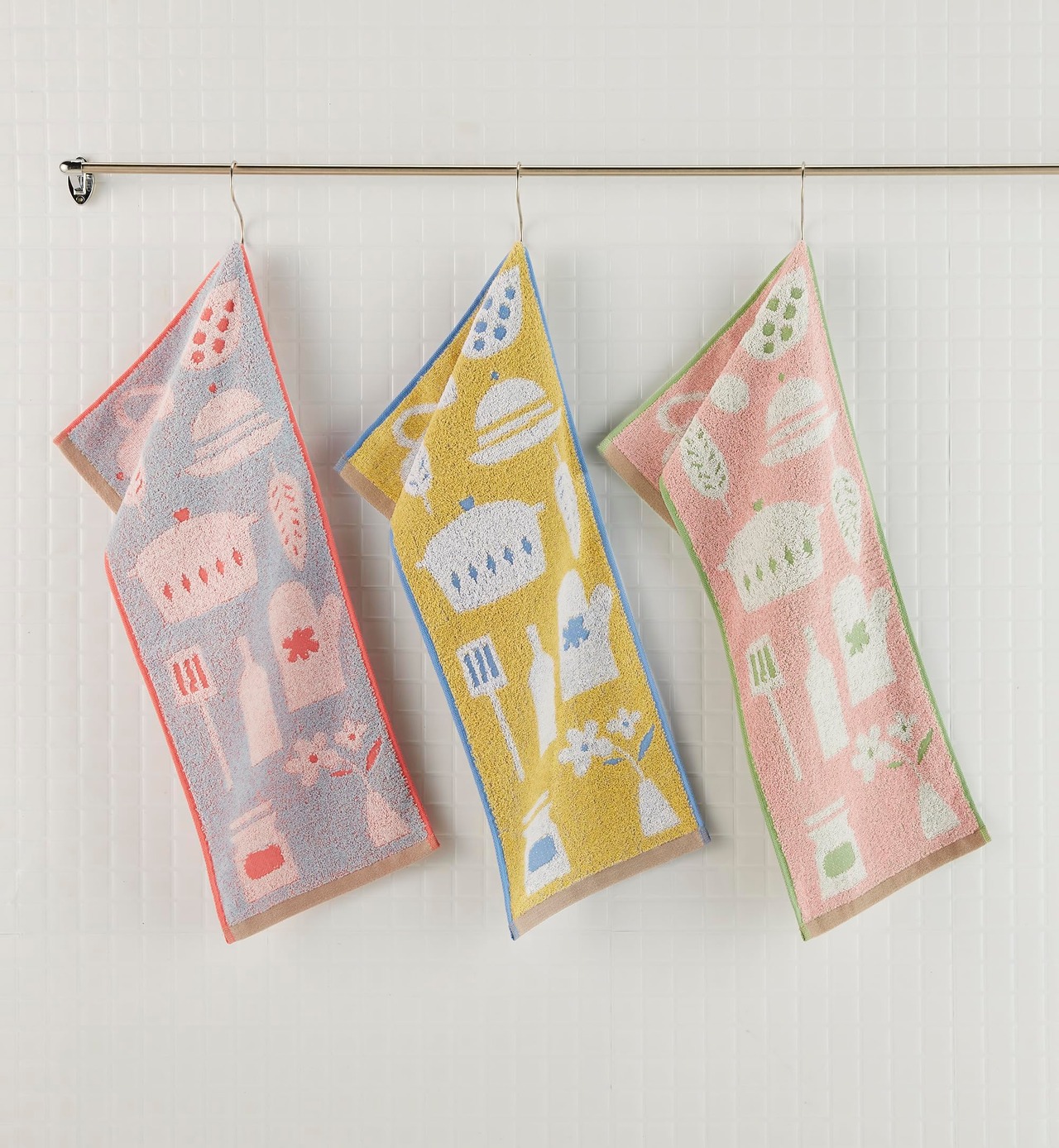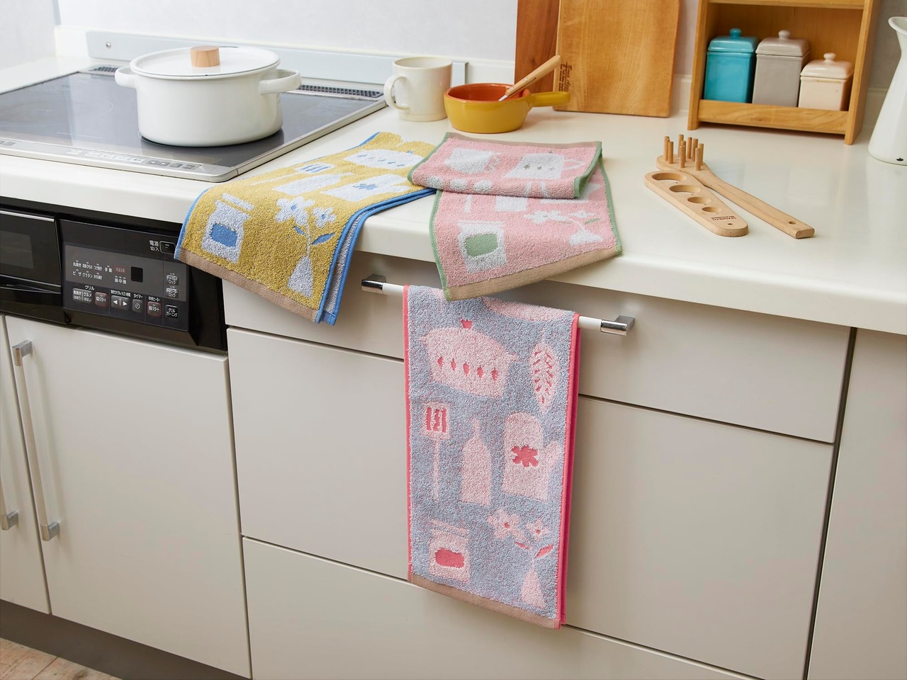 フェイスタオルの幅ではなかなか掛けられない、キッチンの引き出しの取っ手など、「そこにタオルが欲しかった」な場所に掛けられる、便利なサイズアイテムです。