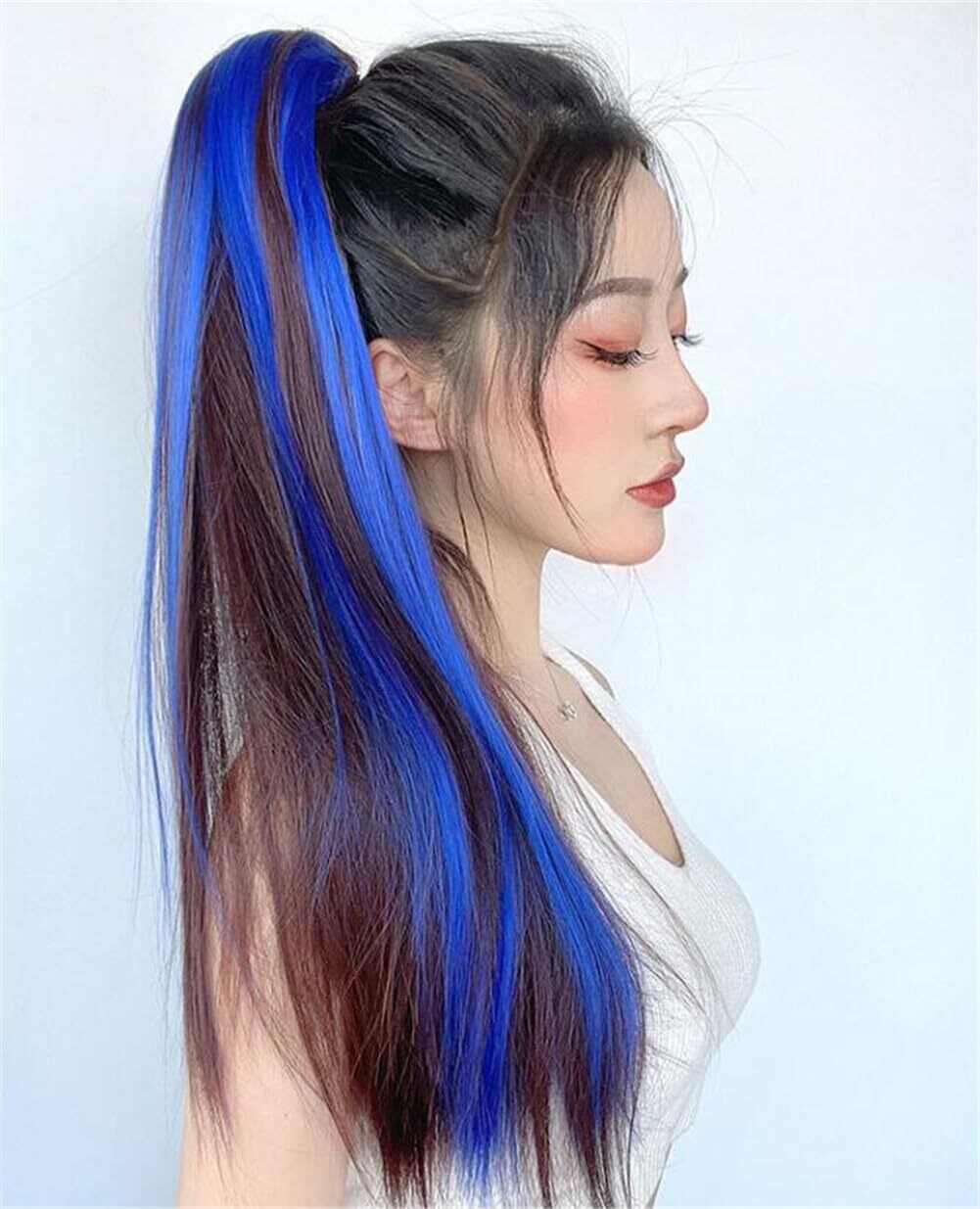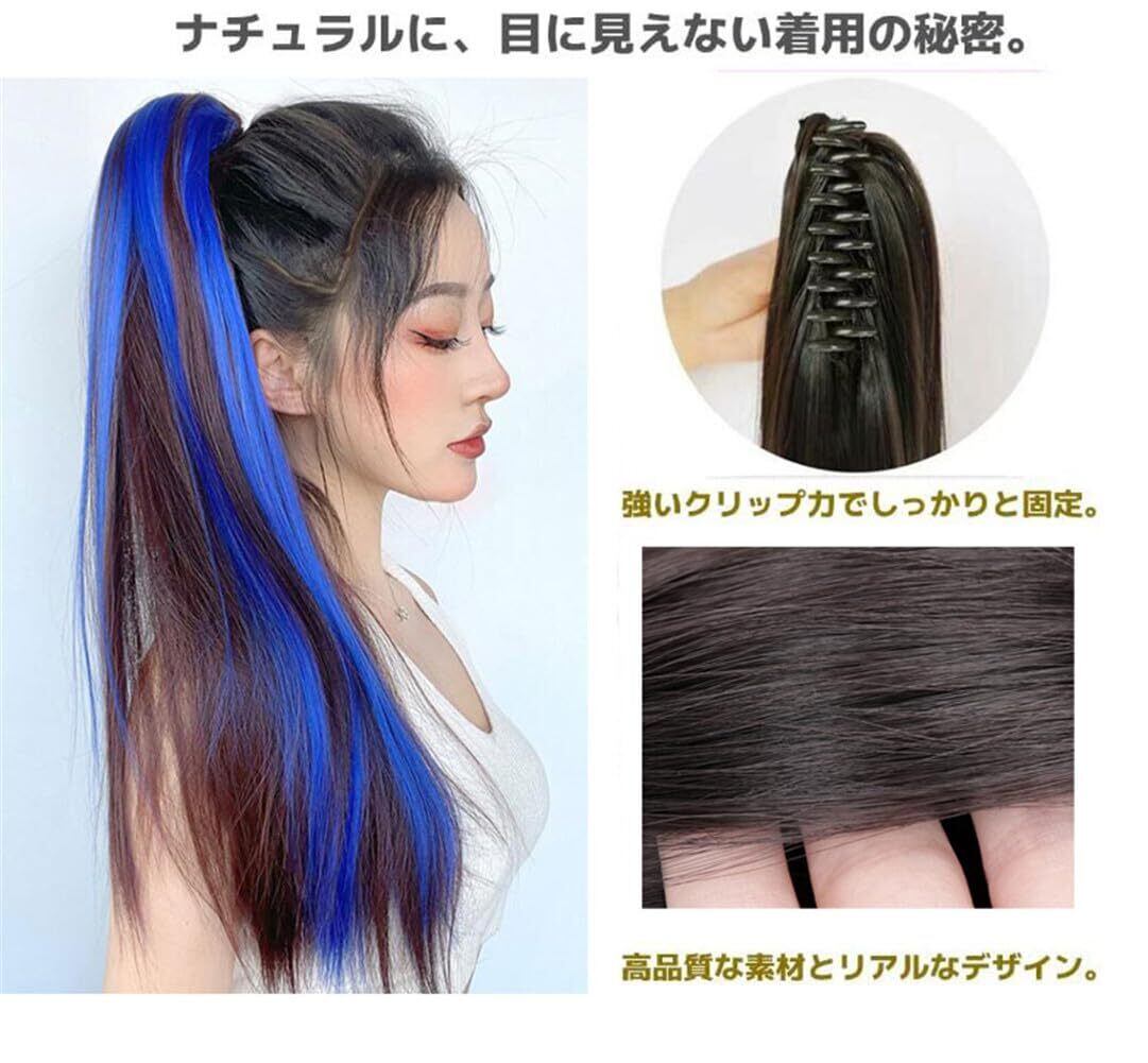 エクステ ポニーテール レディース クリップ式 カラフル ウィッグ ポニーテール ロング ストレート