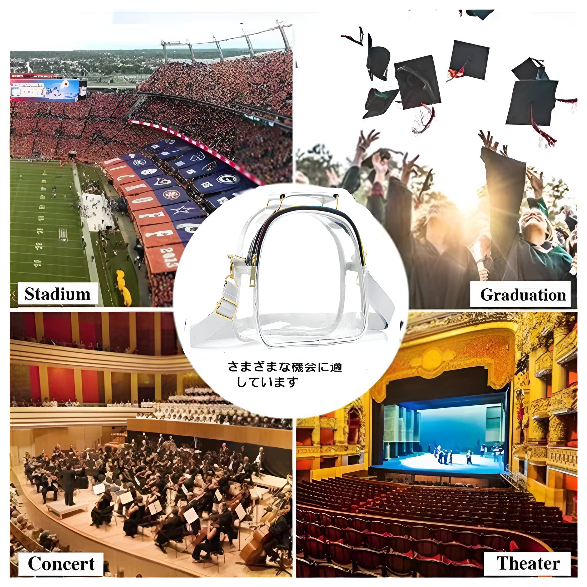 容量: ファッション クリア メッセンジャー バッグは、すべての重要なものを収納するのに十分なスペースを提供します。 携帯電話、財布、化粧品、鍵、サングラス、クリアバッグが必要なコンサートやゲームに最適です。