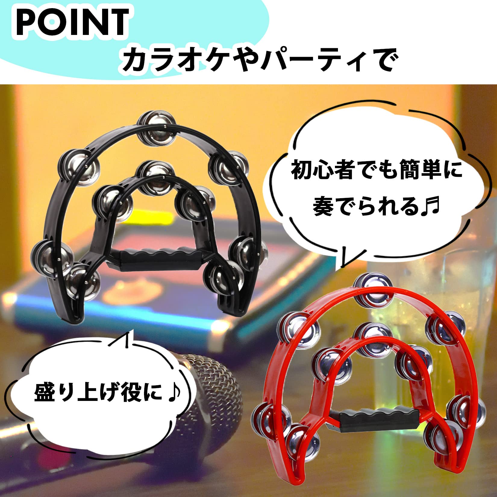 タンバリン 演奏 楽器 パーカッション カラオケ 盛り上げ 半円型 2個 セット (ブラック レッド)
