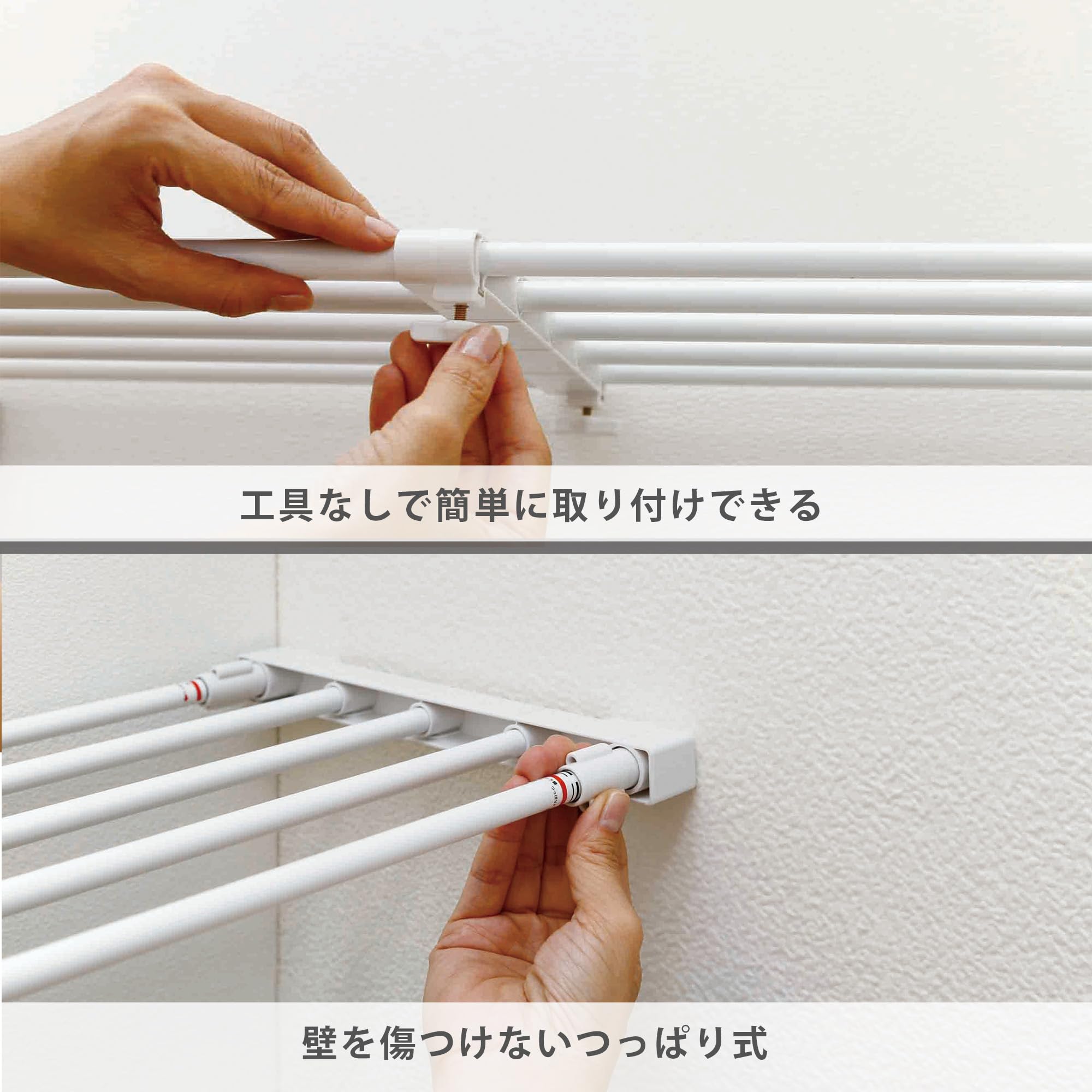 ●取付面を強力につっぱって取り付けますので、取り付け跡が残る場合があります。支障の無い所で使用してください。