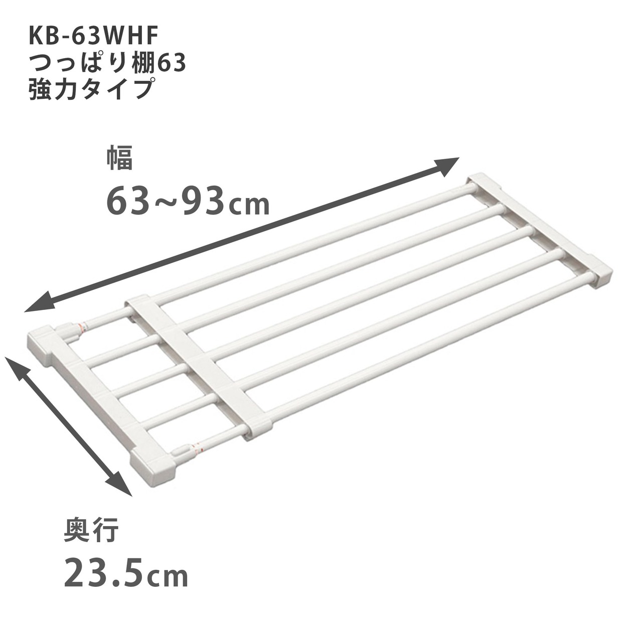 平安伸銅工業 HEIAN SHINDO つっぱり棚63 強力タイプ ベビー用品収納 ホワイト 取付幅63~93cm 耐荷重30~13kg KB-63WHF