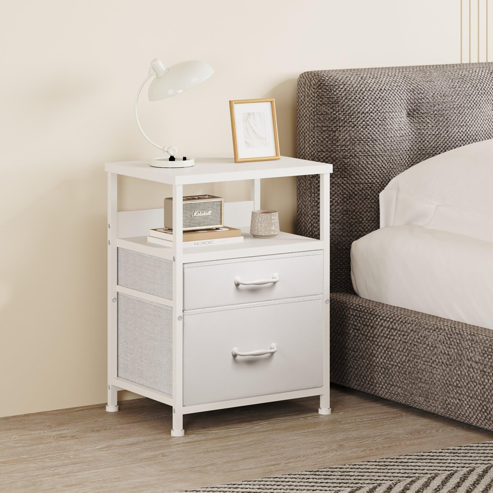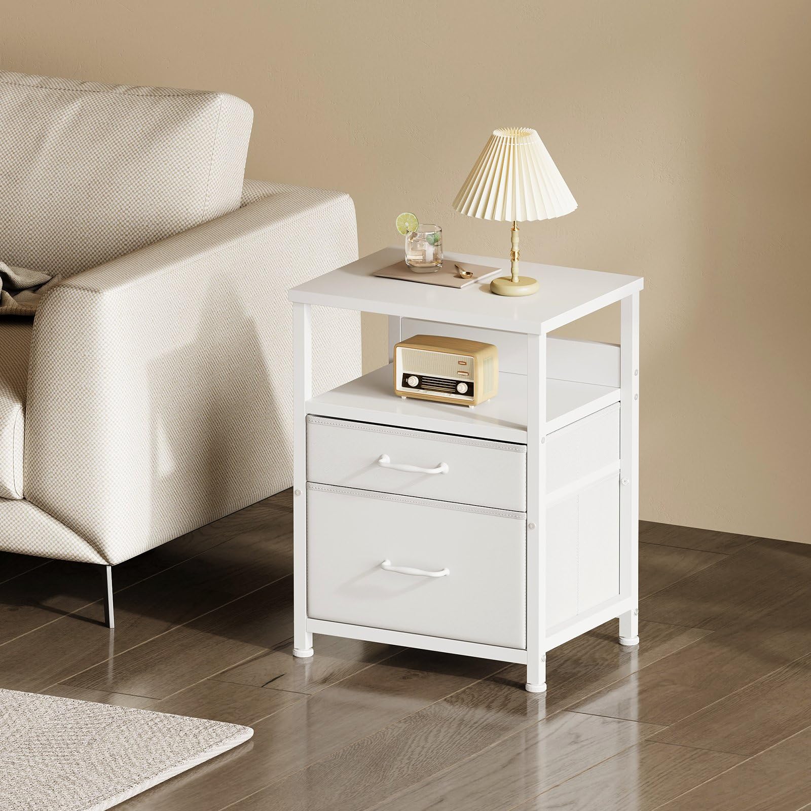 【特価セール】サイドテーブル 白 2つ引き出し付き 寝室 ナイトテーブル おしゃれ 収納チェスト 3段 ミニ サイドチェスト 北欧 洋服タンス ソファ ベッドサイドテーブル 40*29.8*53.5cm ホワイト天板付き 収納付きテーブル キャビネット シンプル SNJ100 白い | asaRulu0511