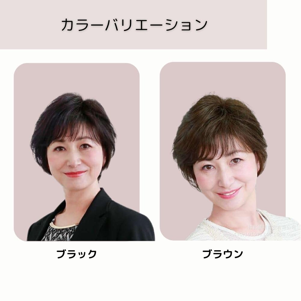 【在庫セール】中高年フルウィッグ レディース ショートヘア かつら 自然 パーマ ふんわり ボブ 斜め前髪 軽量 快適 おしゃれ (ブラウン(大きめサイズ))