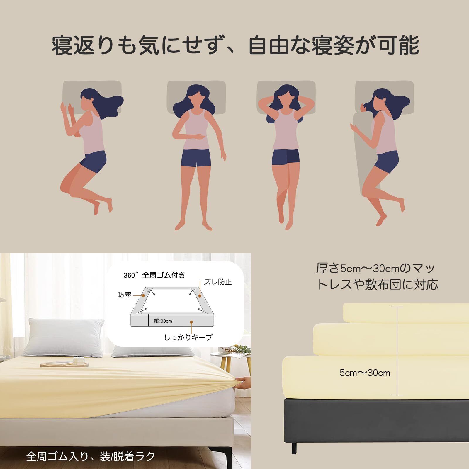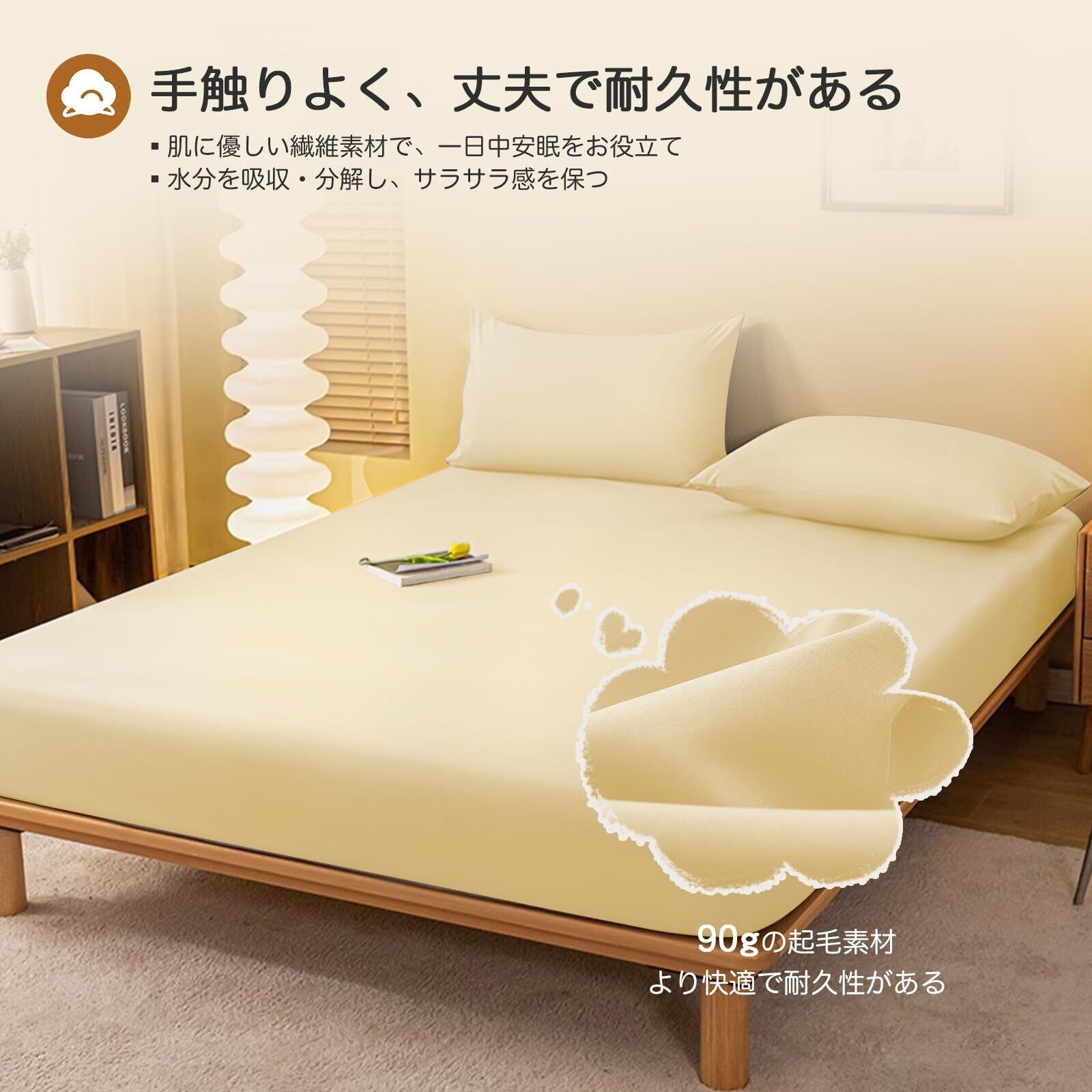 【肌触りよい&通気耐久&寝心地アップ】ピーチスキン加工で、100%のポリエステル素材を使用しており、触り心地が快適で通気性にも優れています。90gの起毛素材採用、丁寧な作りで厚みのあるボックスシーツ、縮みや型崩れなし、毛玉やシワができにくく、耐久性が高い、長くご使用いただけます。ツルッとした質感は素肌に気持ちよく、大人から子供まで誰でも遠慮なく使えるので、寝心地よい毎日を実現!